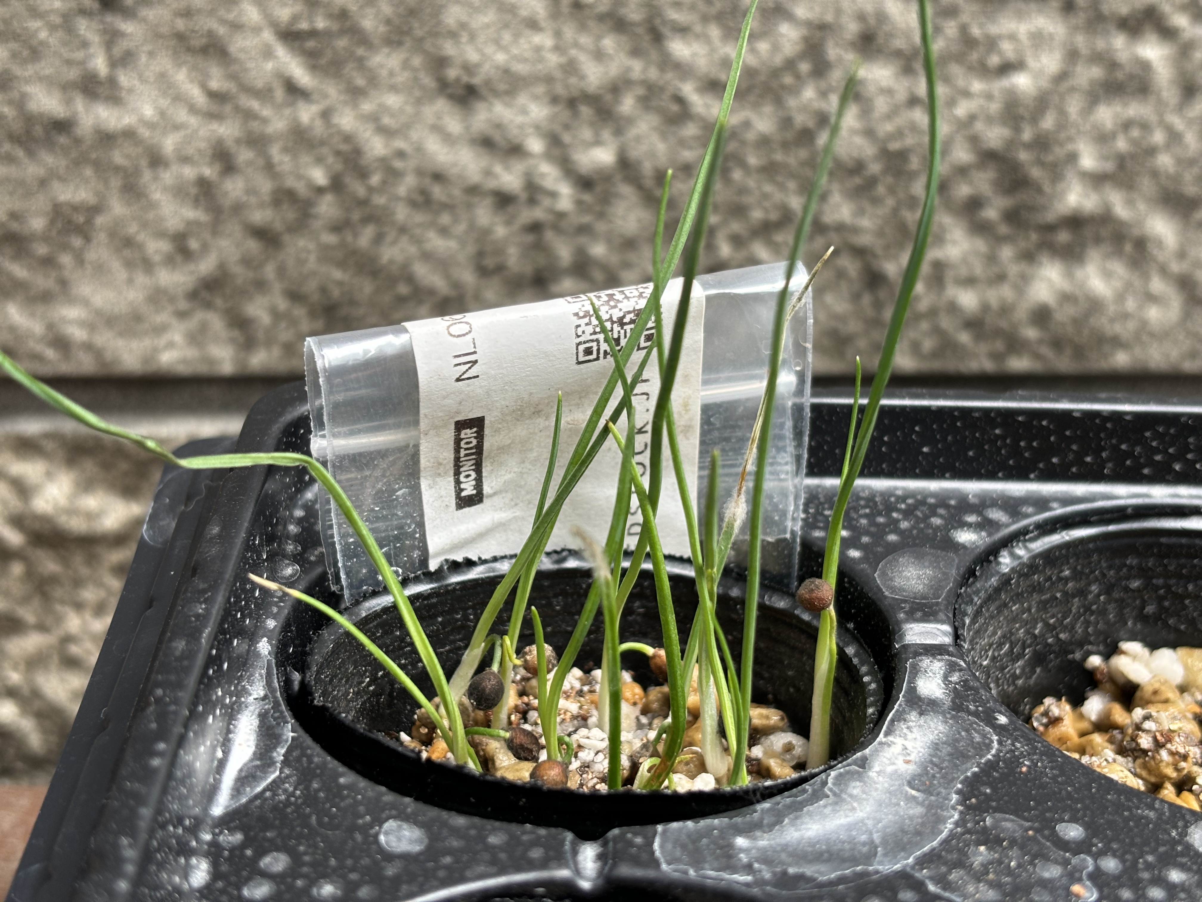 [ 播種日 / 撮影日 ]例: 2024/3/29播種 2024/5/6撮影[ その他(用土や管理方法など)]ダコニール+メネデール溶液で腰水市販の多肉用土に覆土なしでほぼ発芽し生育も良し
