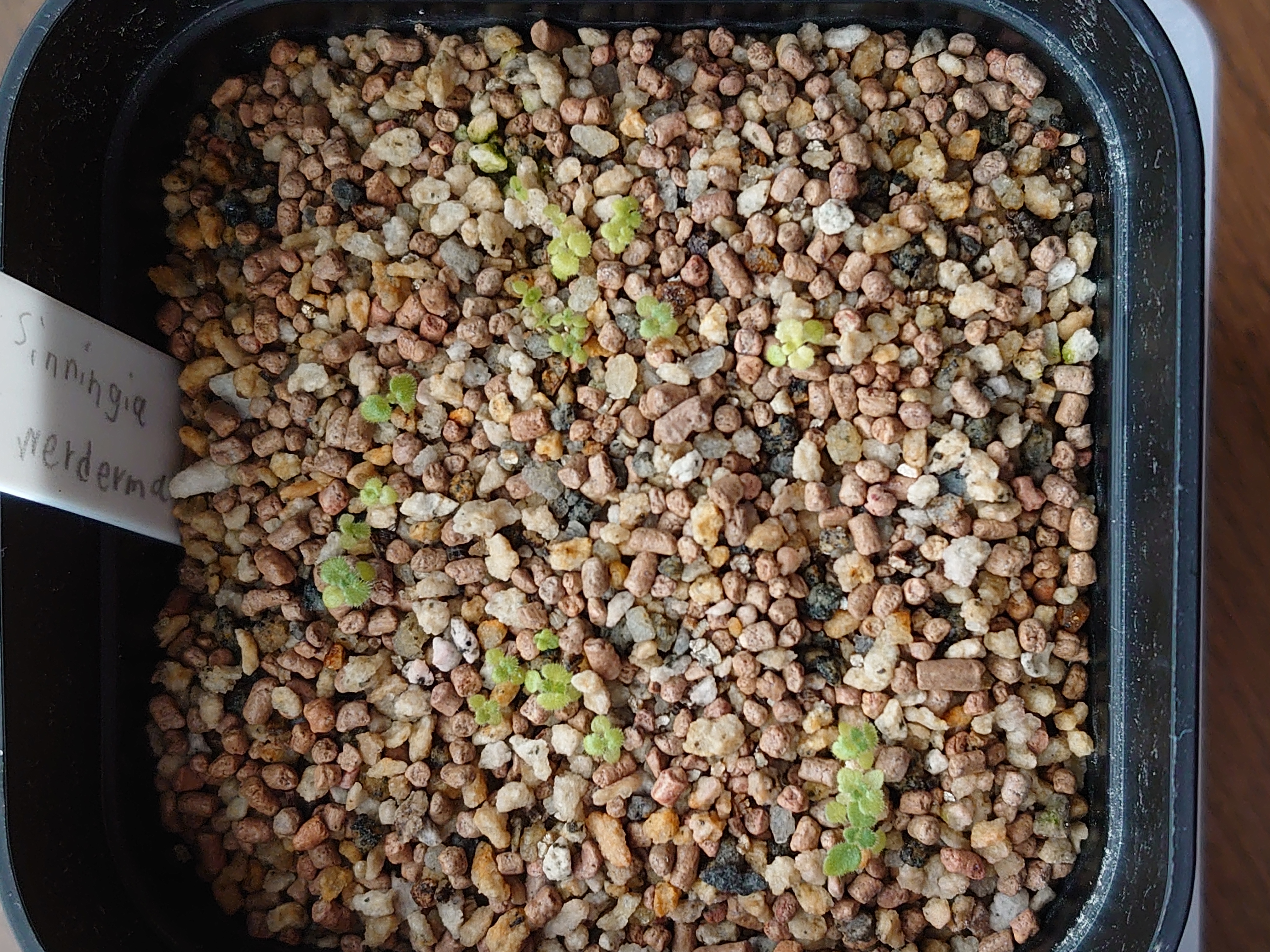赤玉メインの用土にホームセンターで売ってる細か目のサボテン・多肉植物用土を敷き播種、15度〜28度で管理