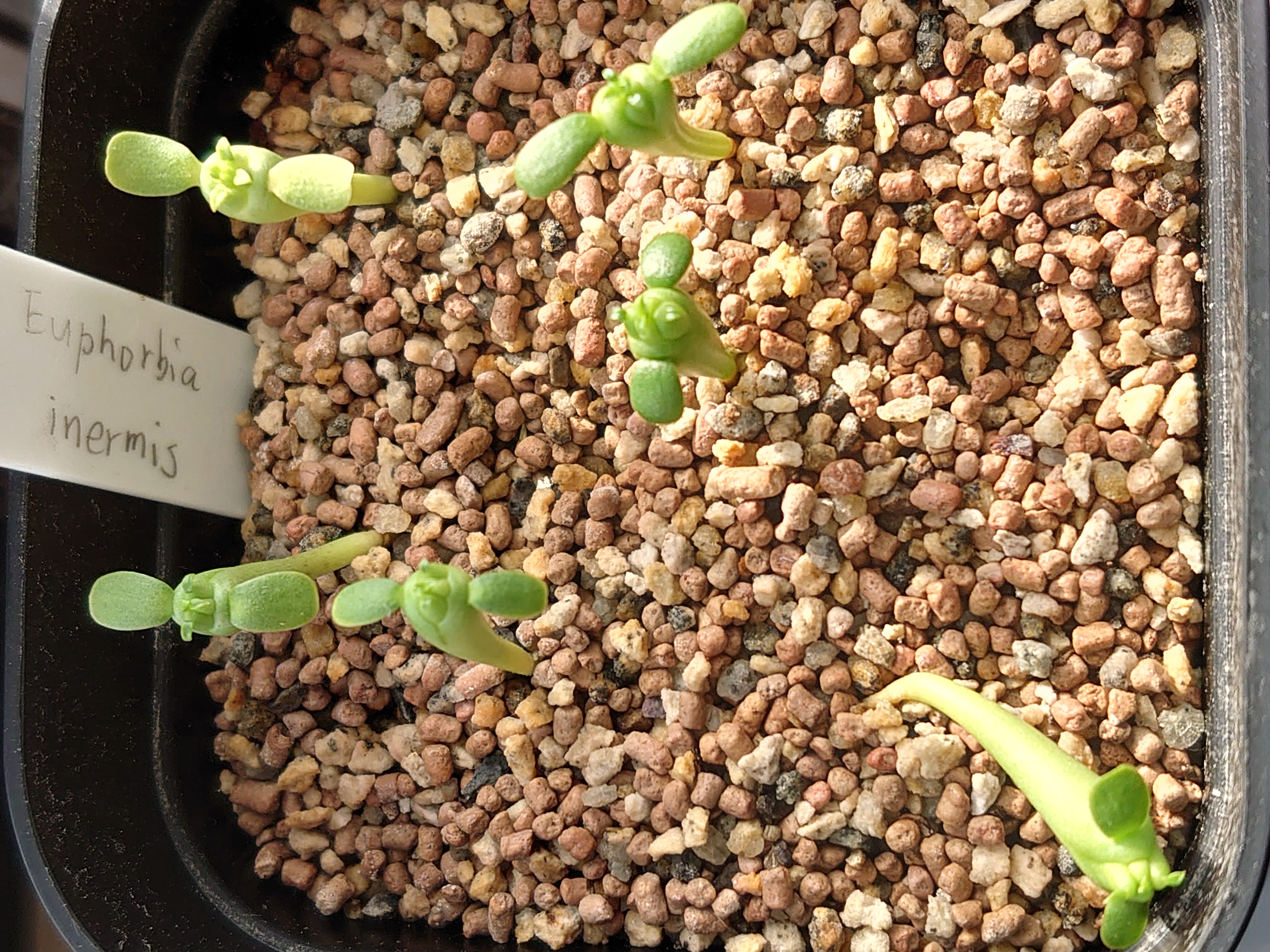 赤玉メインの用土にホームセンターで売ってる細か目のサボテン・多肉植物用土を敷き播種、15度〜28度で管理
