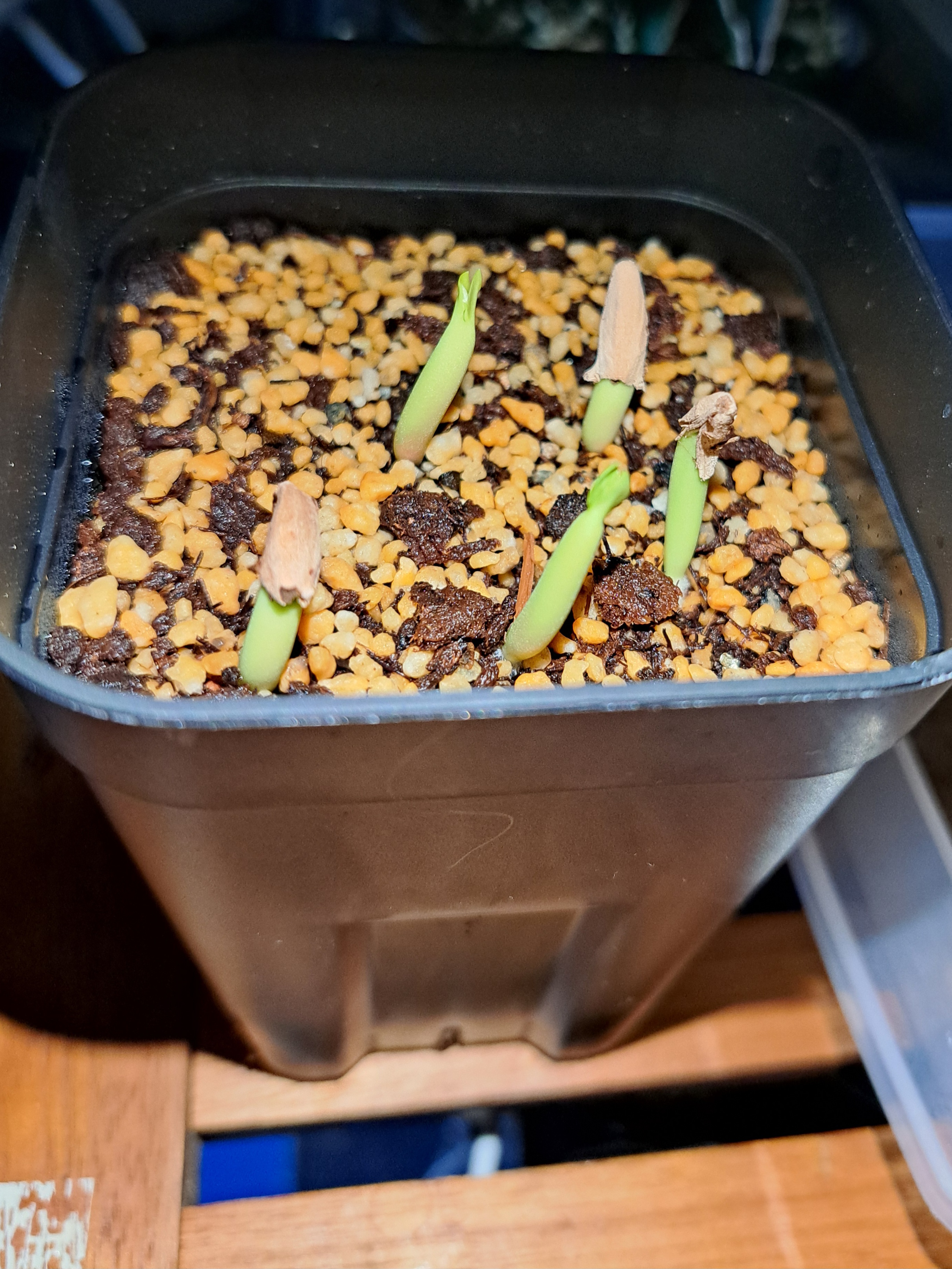 観葉植物の土に鹿沼土+ピートモスを敷き播種