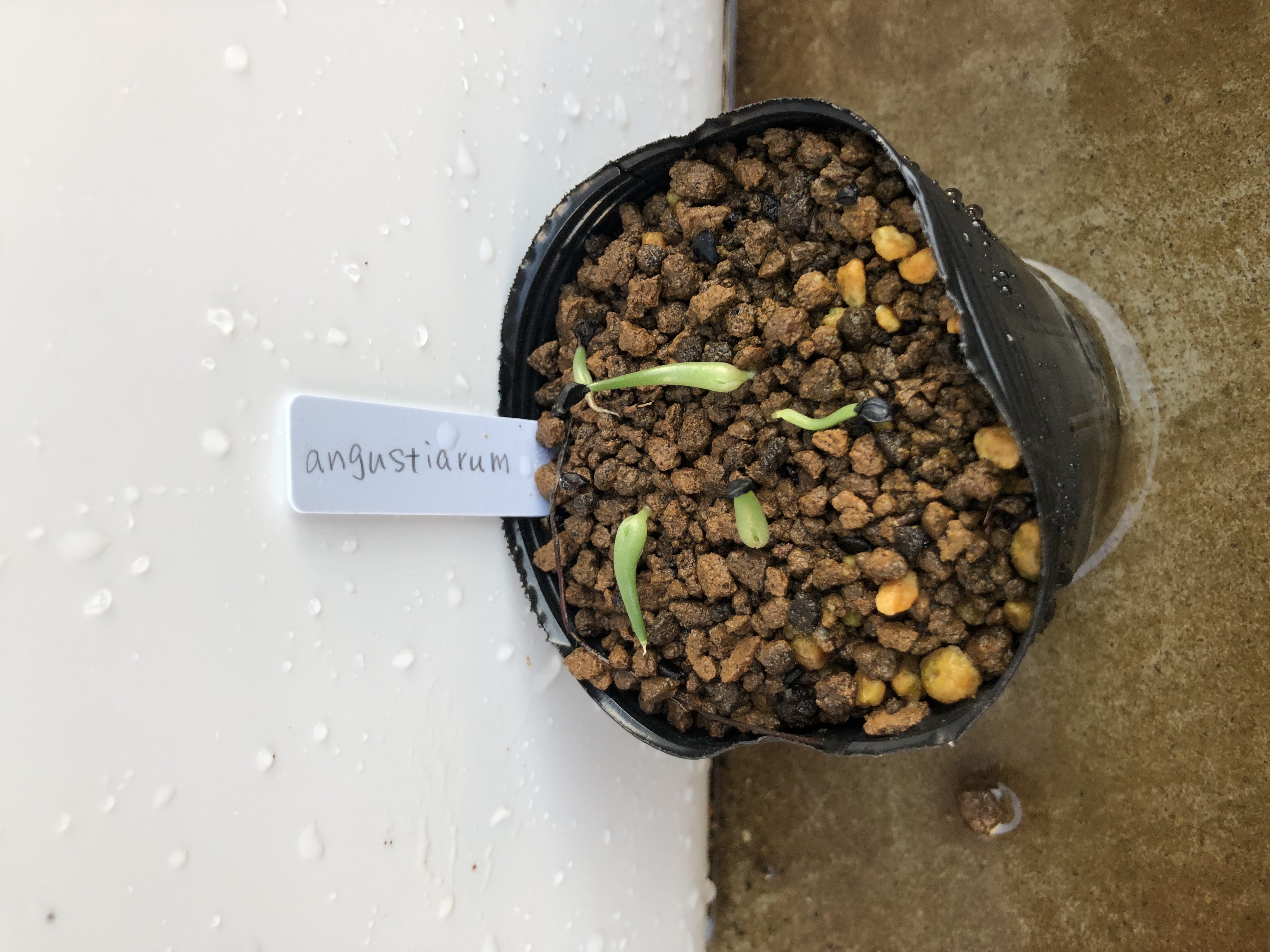 赤玉メインの用土にバーミキュライトを敷き播種、20度〜25度で管理