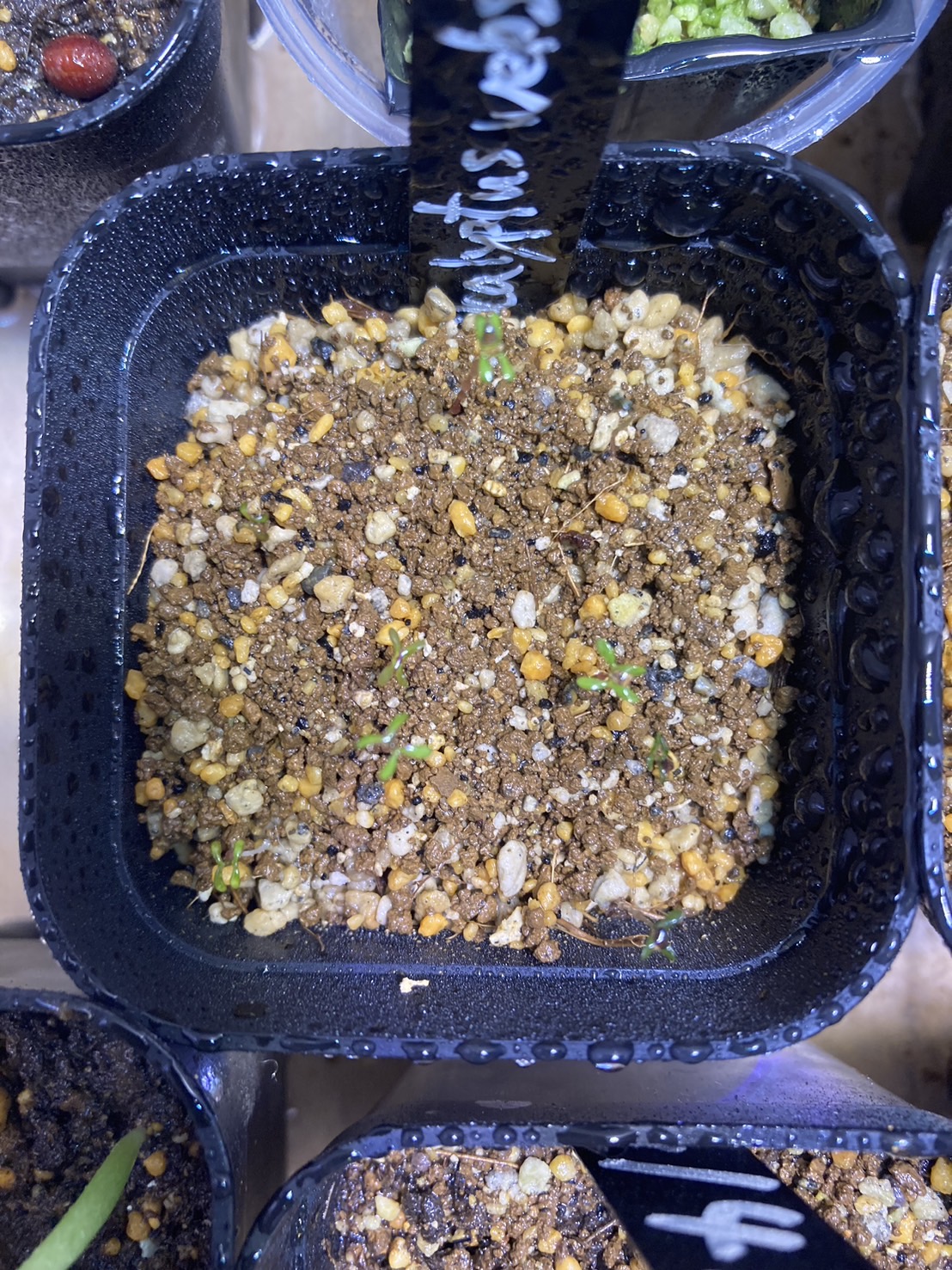 種まき用土に播種、20度〜25度でLED下で湿度80%超で管理