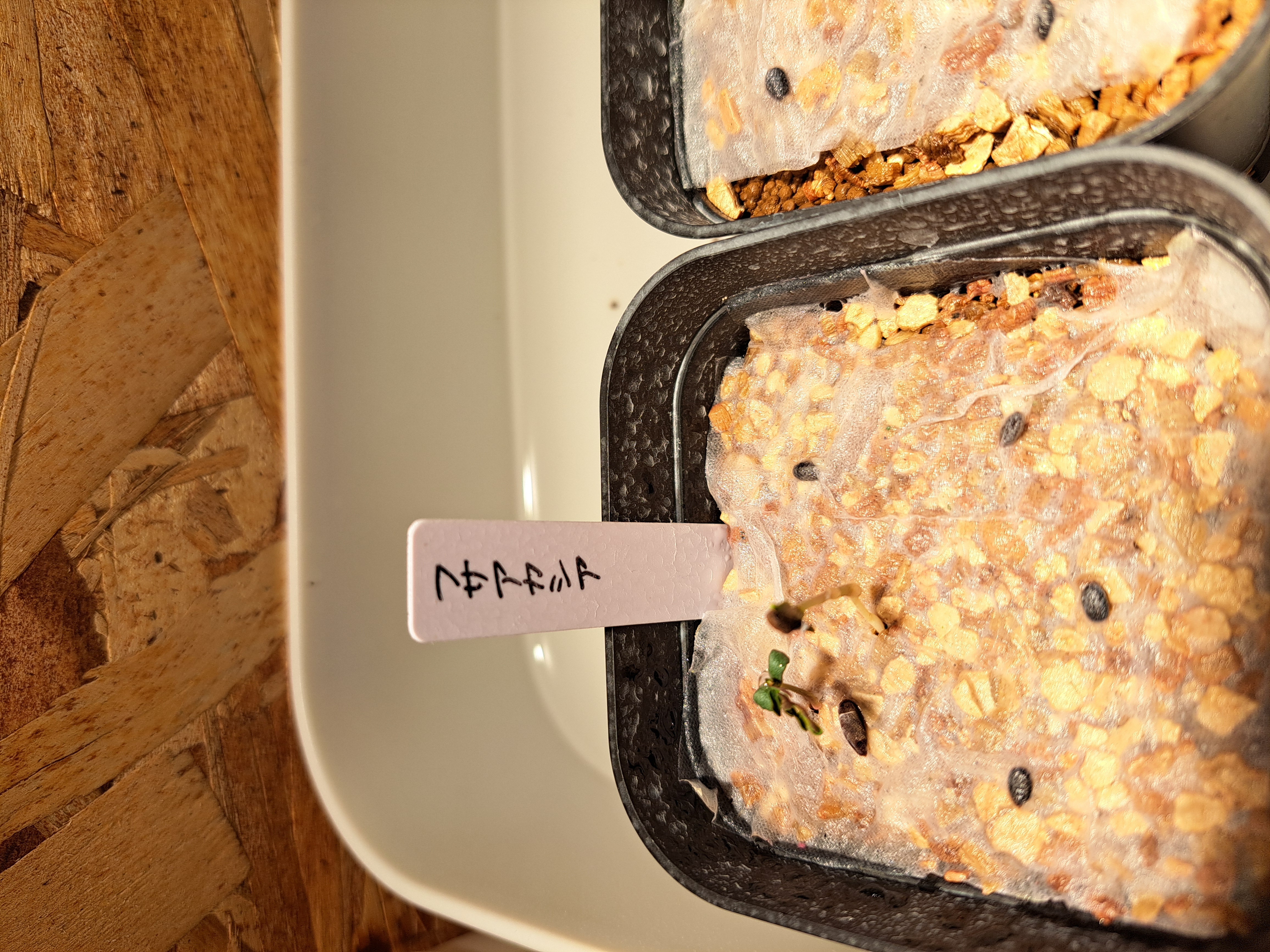 赤玉土細粒、表面にバーミキュライト敷きました。乾燥を防ぐため種の上からトイレットペーパーを敷きました。