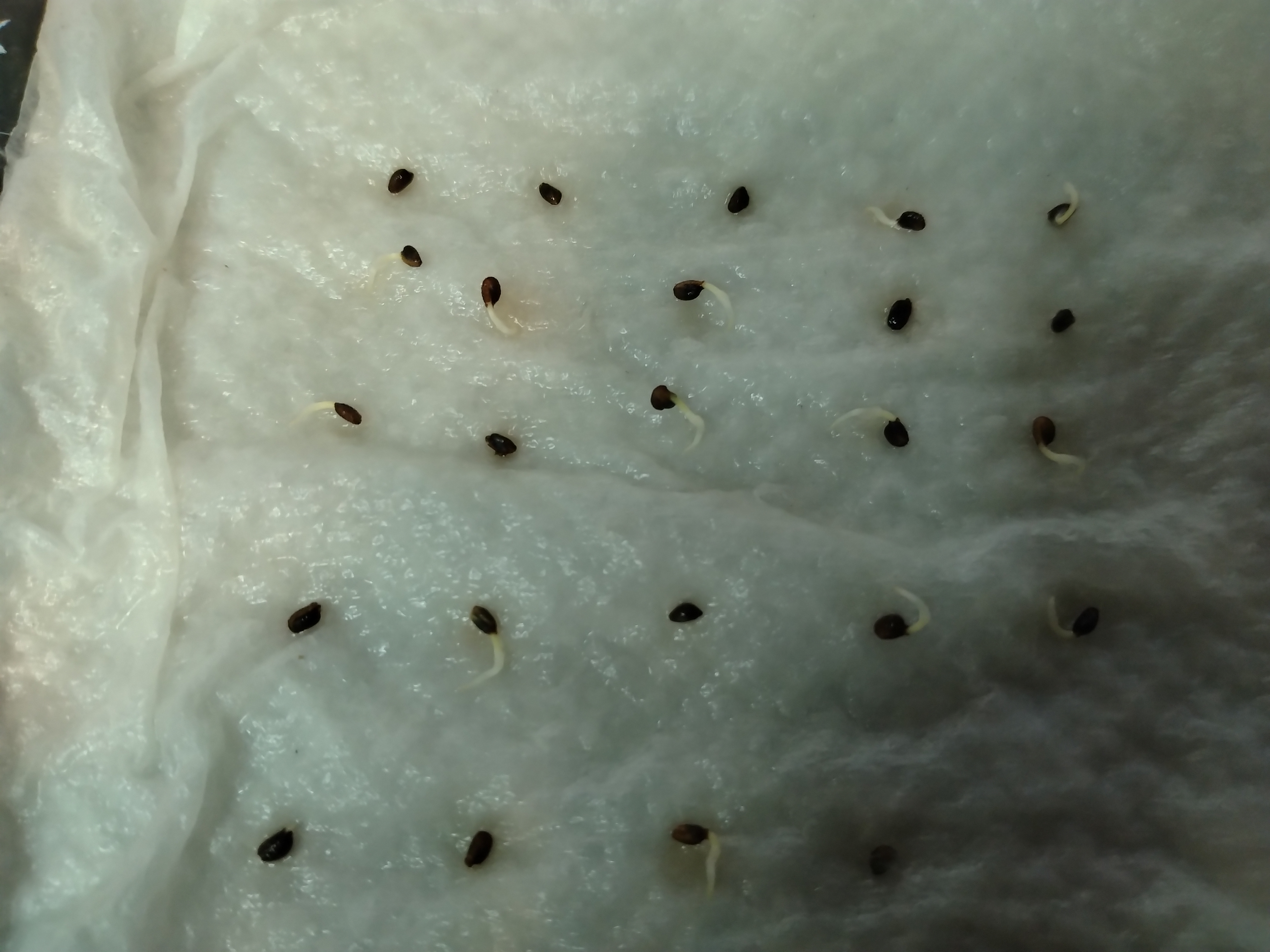 5/23 発芽率・期間等の情報がないため、とりあえずキッチンペーパーに播種、メネデール・ベンレート水溶液にひたひた、室内管理