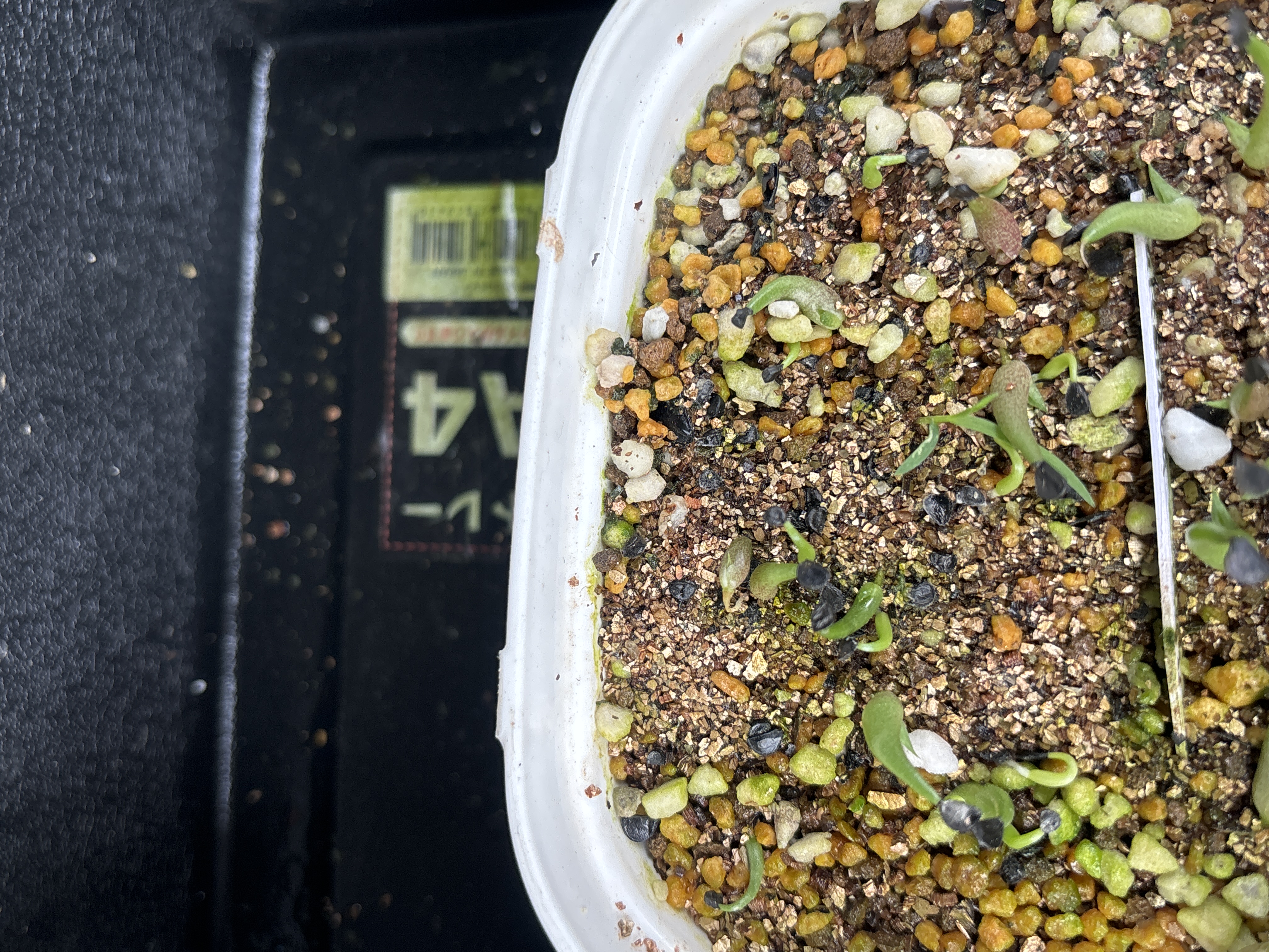 赤玉メインの用土に水没状態で播種。