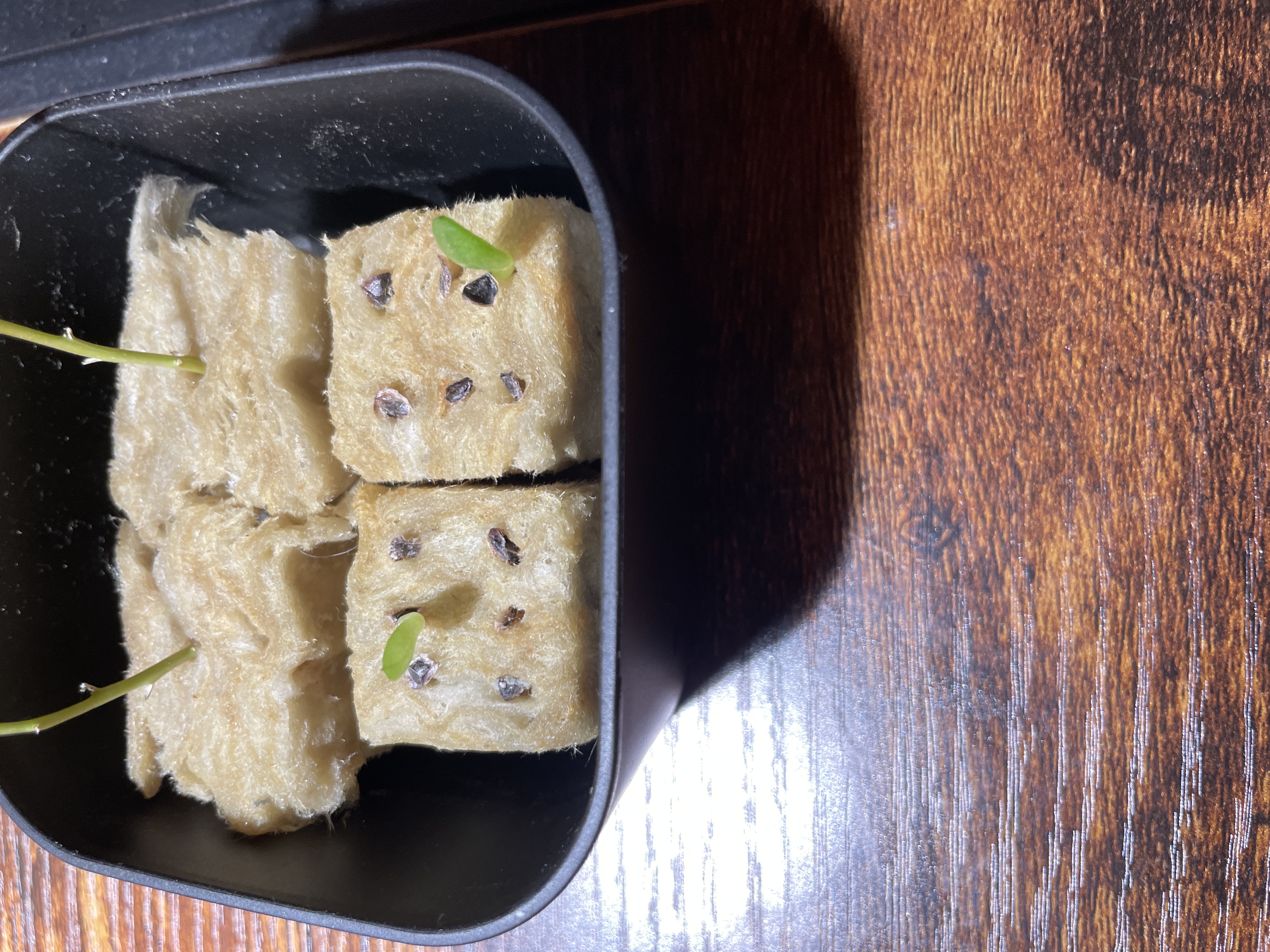 [ 播種日 / 撮影日 ]2024/5/8播種 2024/5/27撮影[ 播種数 / 発芽数 ] 12粒/ 2粒[ その他(用土や管理方法など)]ロックウールでの播種を試してみました。