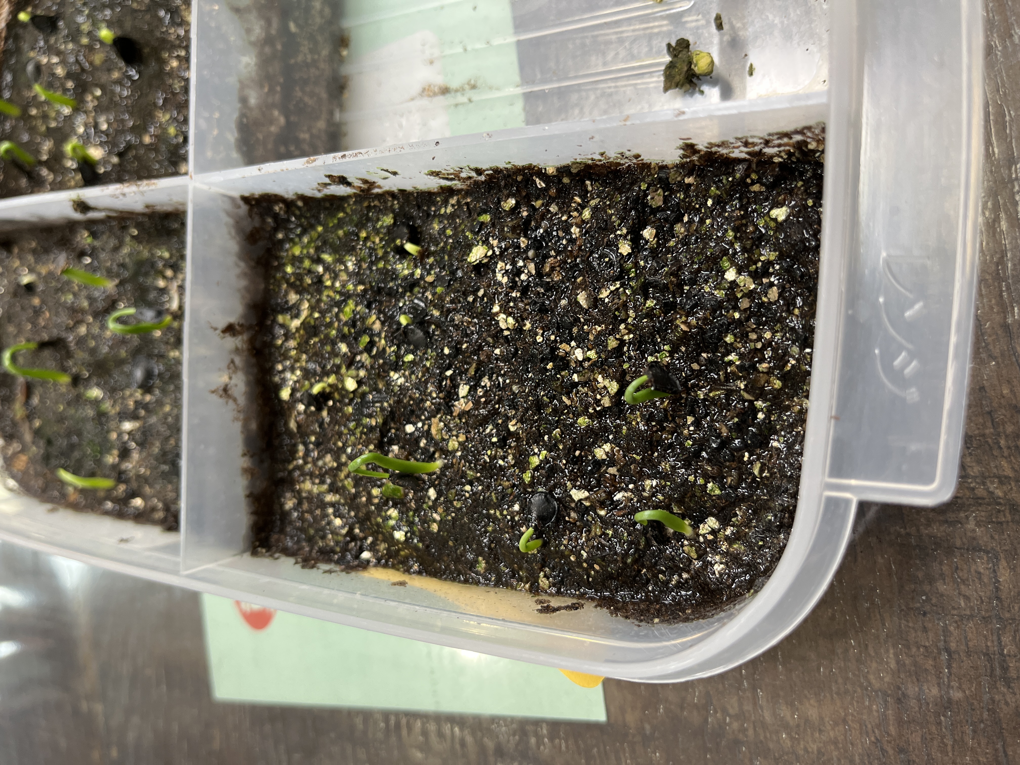 播種前に何もせず、ネギ用種まき培土をメネデール水で湿らせ、20〜25度で管理。