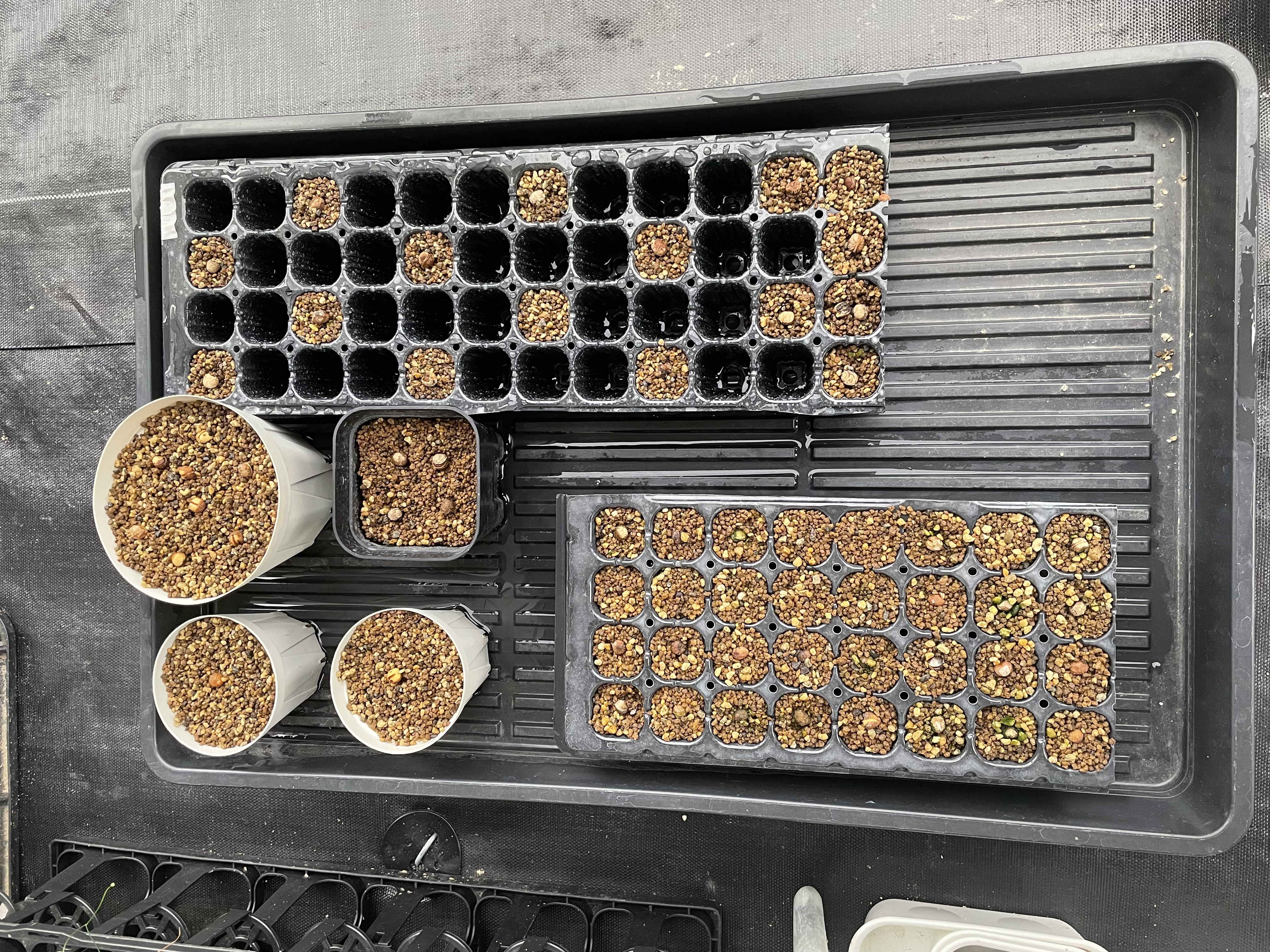 2024/4/20播種 2024/5/27撮影[ 播種数 / 発芽数 ]50粒/ 3粒[ その他(用土や管理方法など)]赤玉1:日向1を敷き播種、腰水