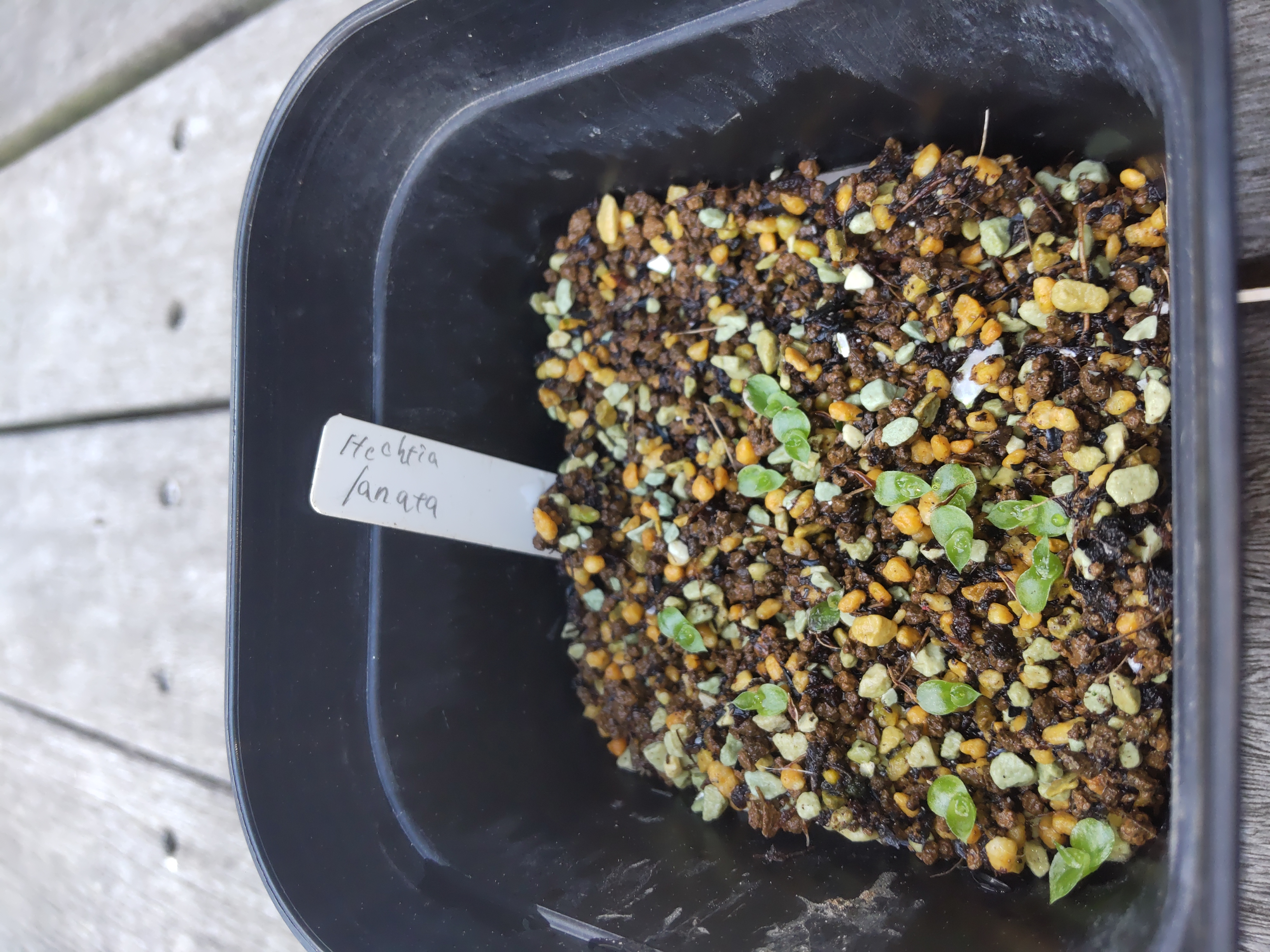 軽石(小粒)を鉢底石として敷き、プロトリーフ盆栽土をベースにバーク堆肥(糞類が入ってないもの)と化成肥料を少々。