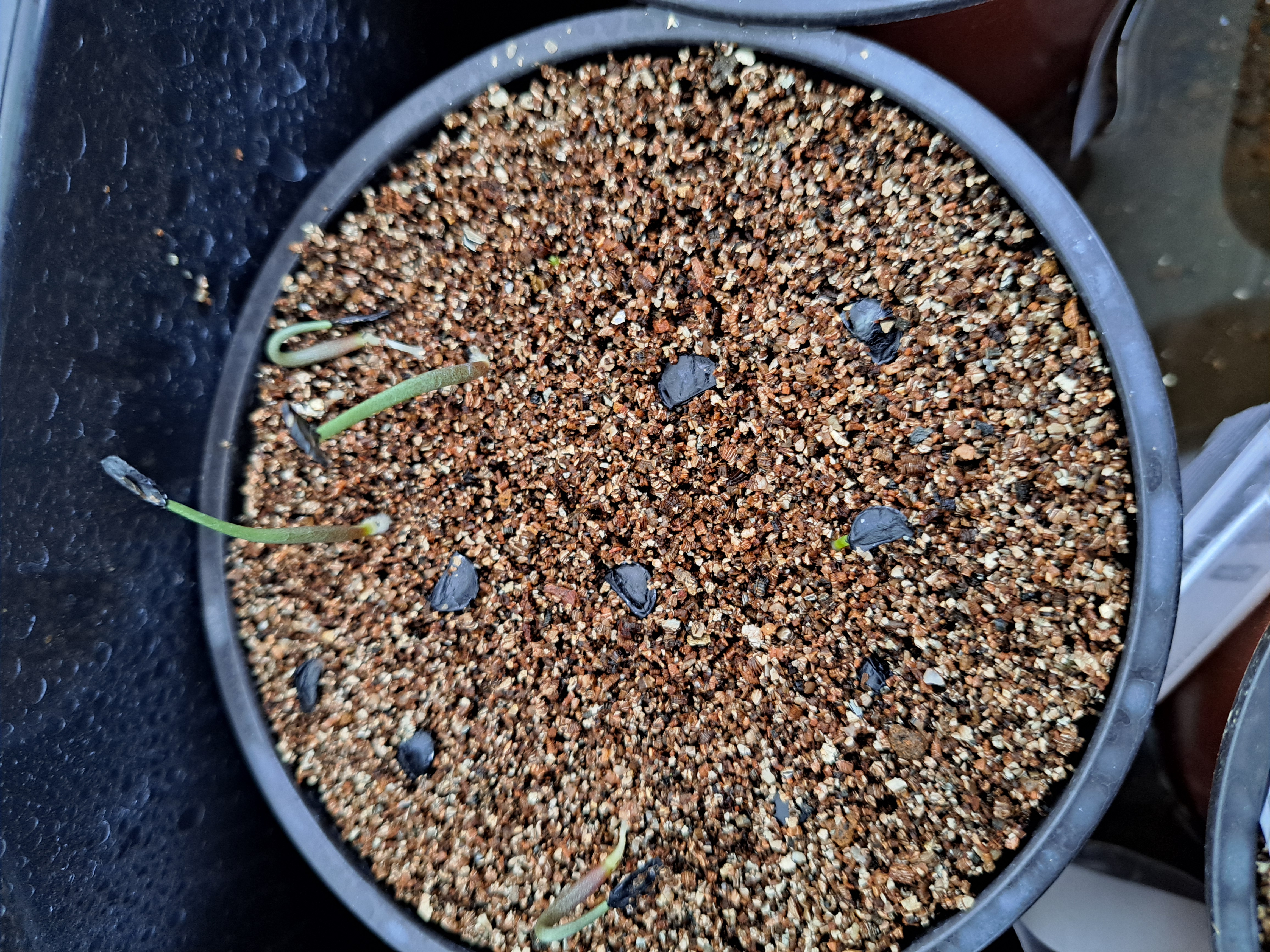 赤玉メインの用土に細目のバーミキュライトを敷き播種