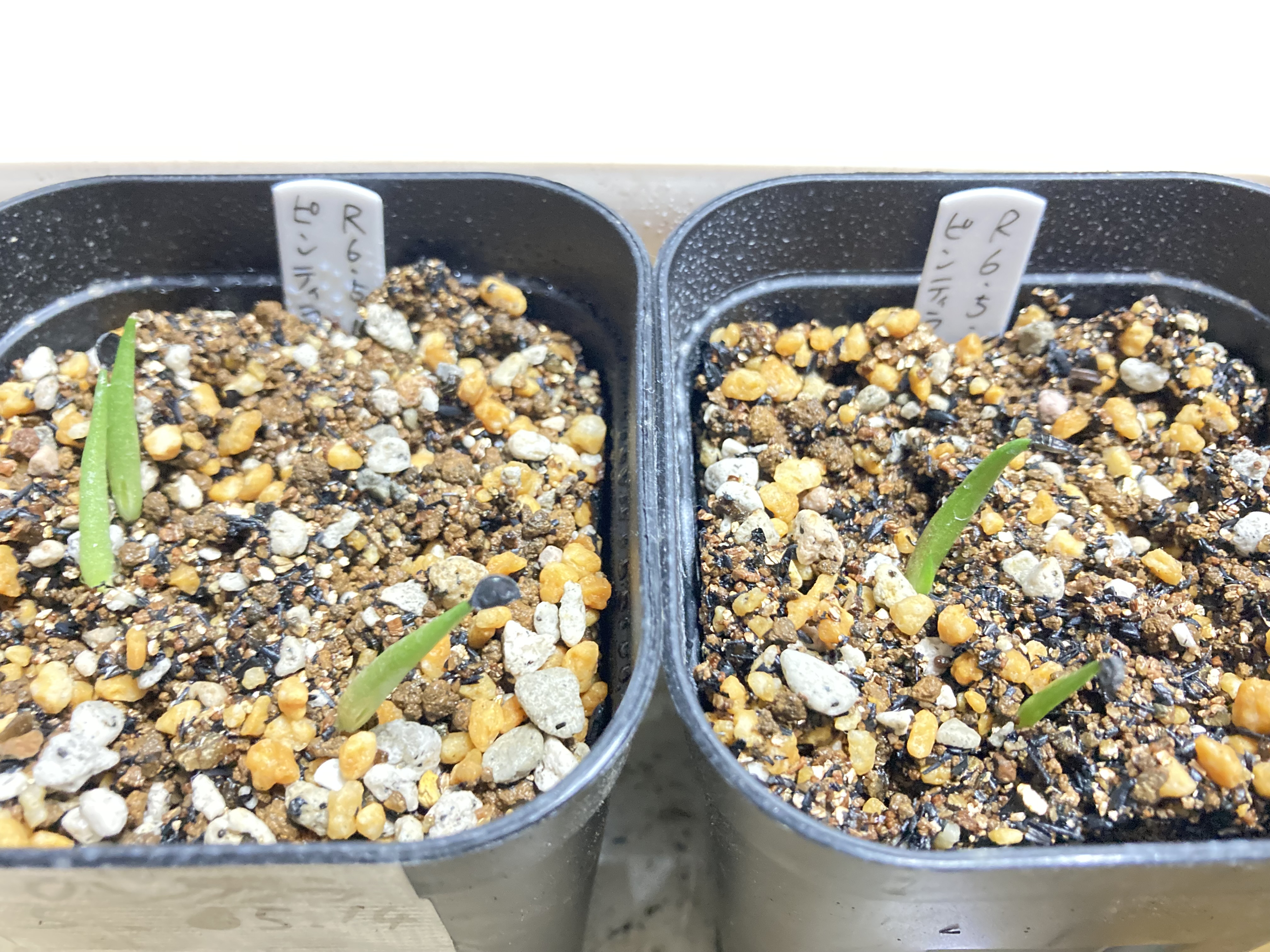 播種日 / 撮影日 ] 2024/5/14播種 2024/6/5撮影[ 播種数 / 発芽数 ] 10粒/ 5粒用土:赤土/鹿沼土/軽石/バーミキュライト/くん炭