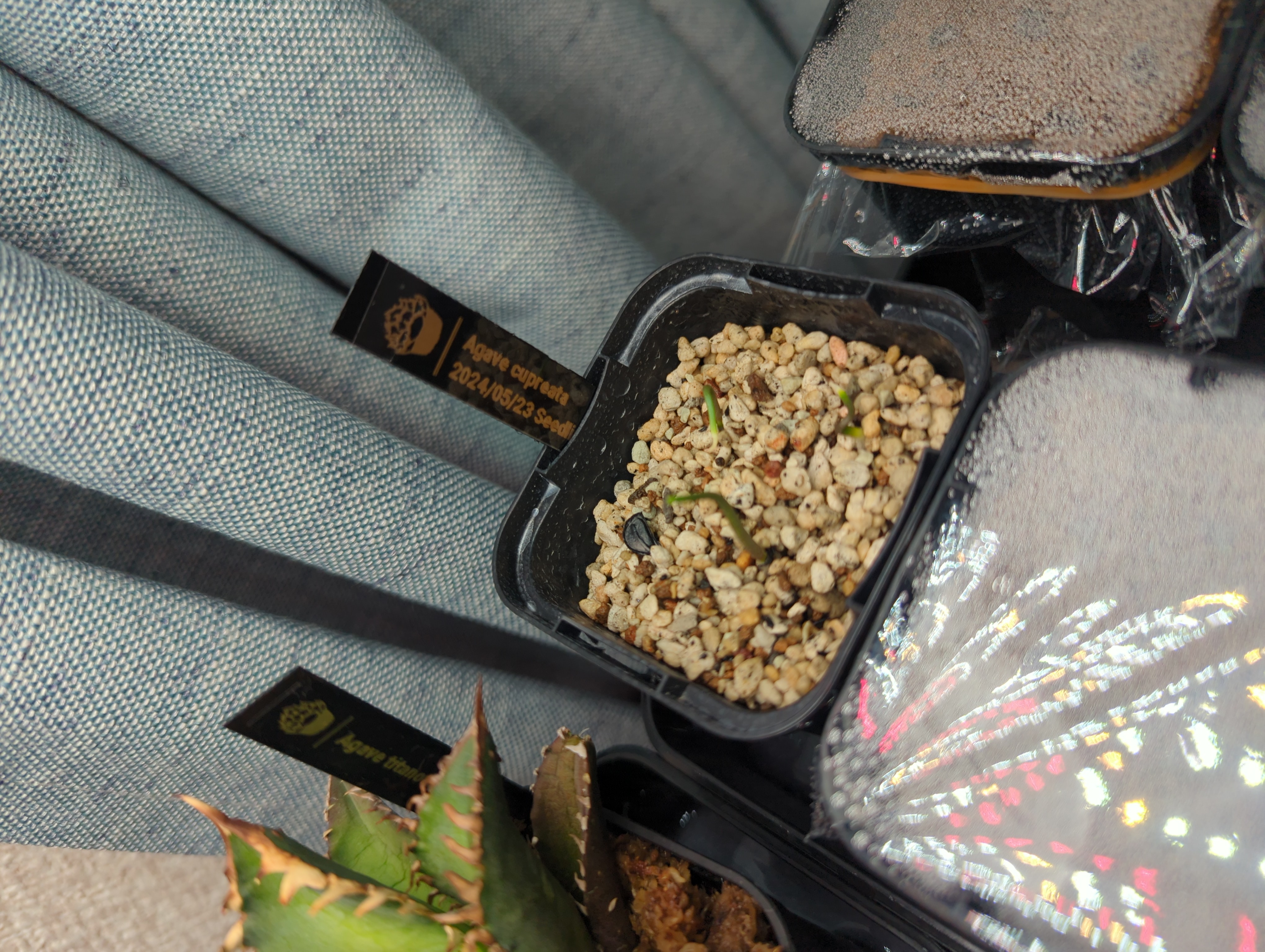 メネデール希釈水6h浸水、腰水管理。25℃程度(加温無し)でラップあり。モニター分。同時に播種したtitanotaは播種後1週間以内で発芽したがcupreataのみ10-14日で発芽。乾燥させるため発芽しないものはジップロックへ移し管理中。