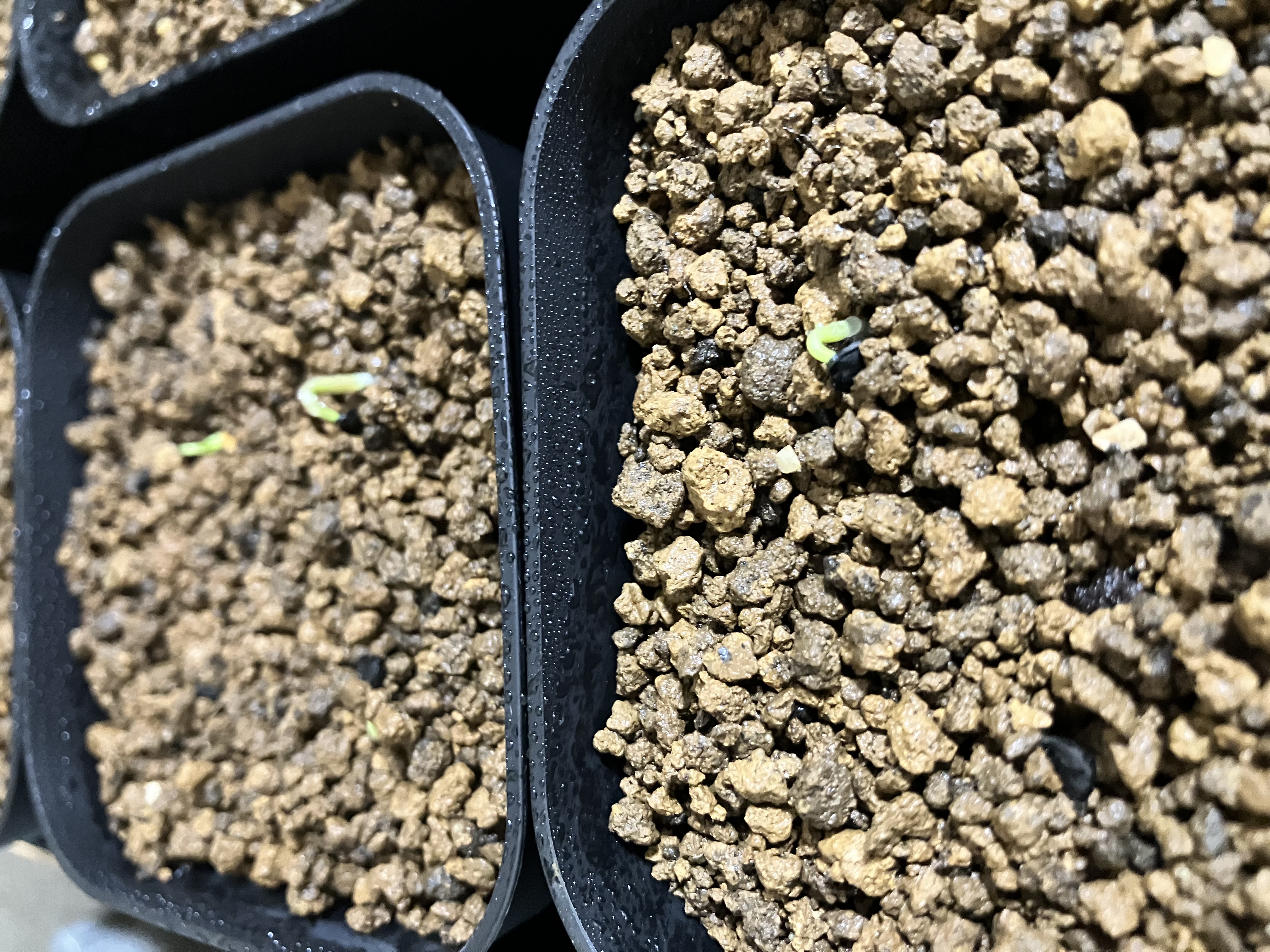 サボテン用土、上に赤玉、播種後に土はかけませんでした。