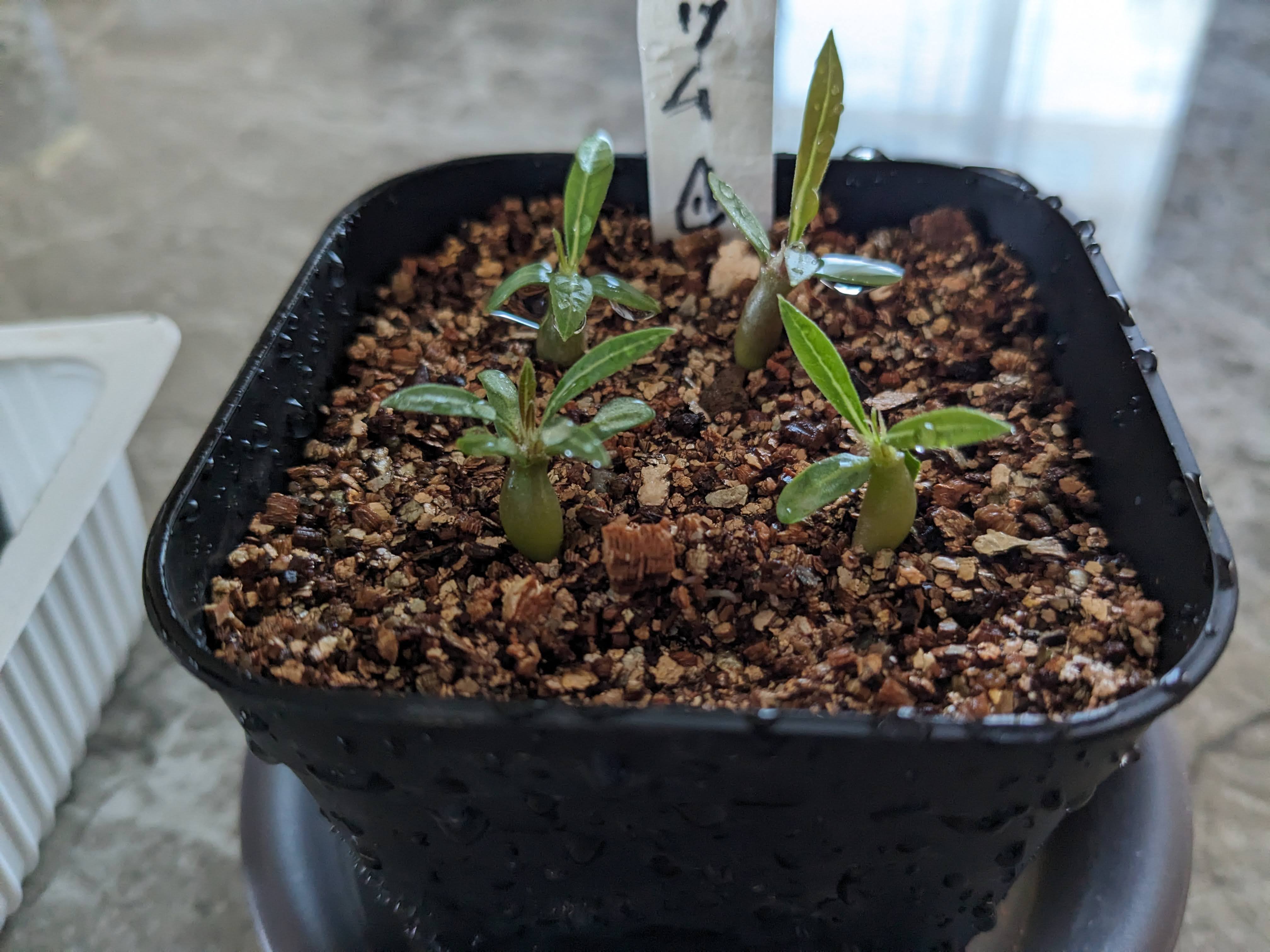 2024/4/27播種 2024/6/8撮影20粒/ 12粒発芽播種前にダコニール+メネデール溶液に12時間浸漬細目のバーミキュライトを熱湯殺菌後に播種、20度〜28度で管理