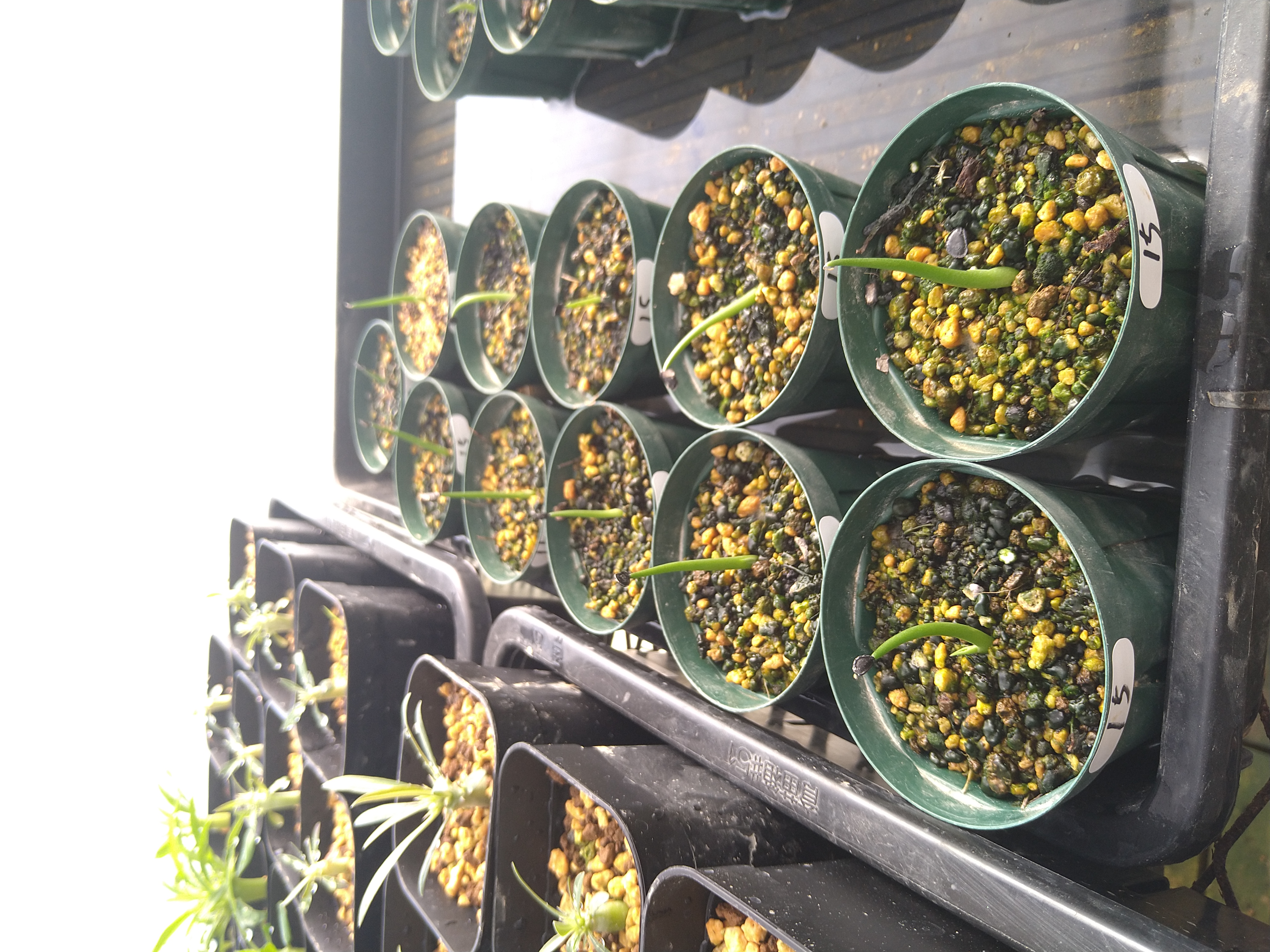[ 播種日 / 撮影日 ] 2024/5/20播種 2024/6/8撮影 [ 播種数 / 発芽数 ] 12粒/ 11粒 [ その他(用土や管理方法など)] 播種前にダコニール+メネデール溶液に半日程度浸漬 赤玉土と鹿沼土ブレンド用土に播種 25度〜25度で管理