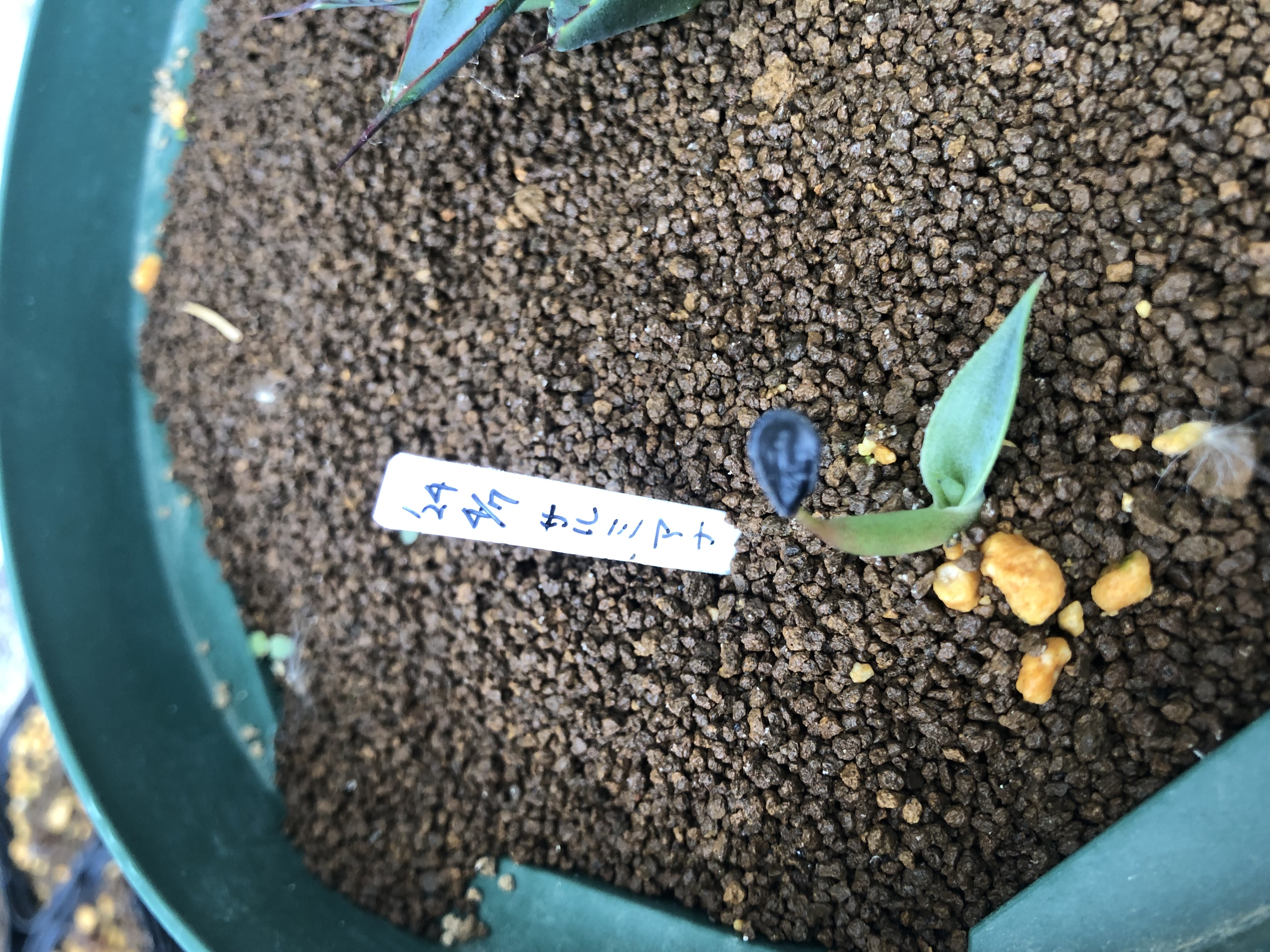 生き残った1/50粒を大きめの鉢へ移植。