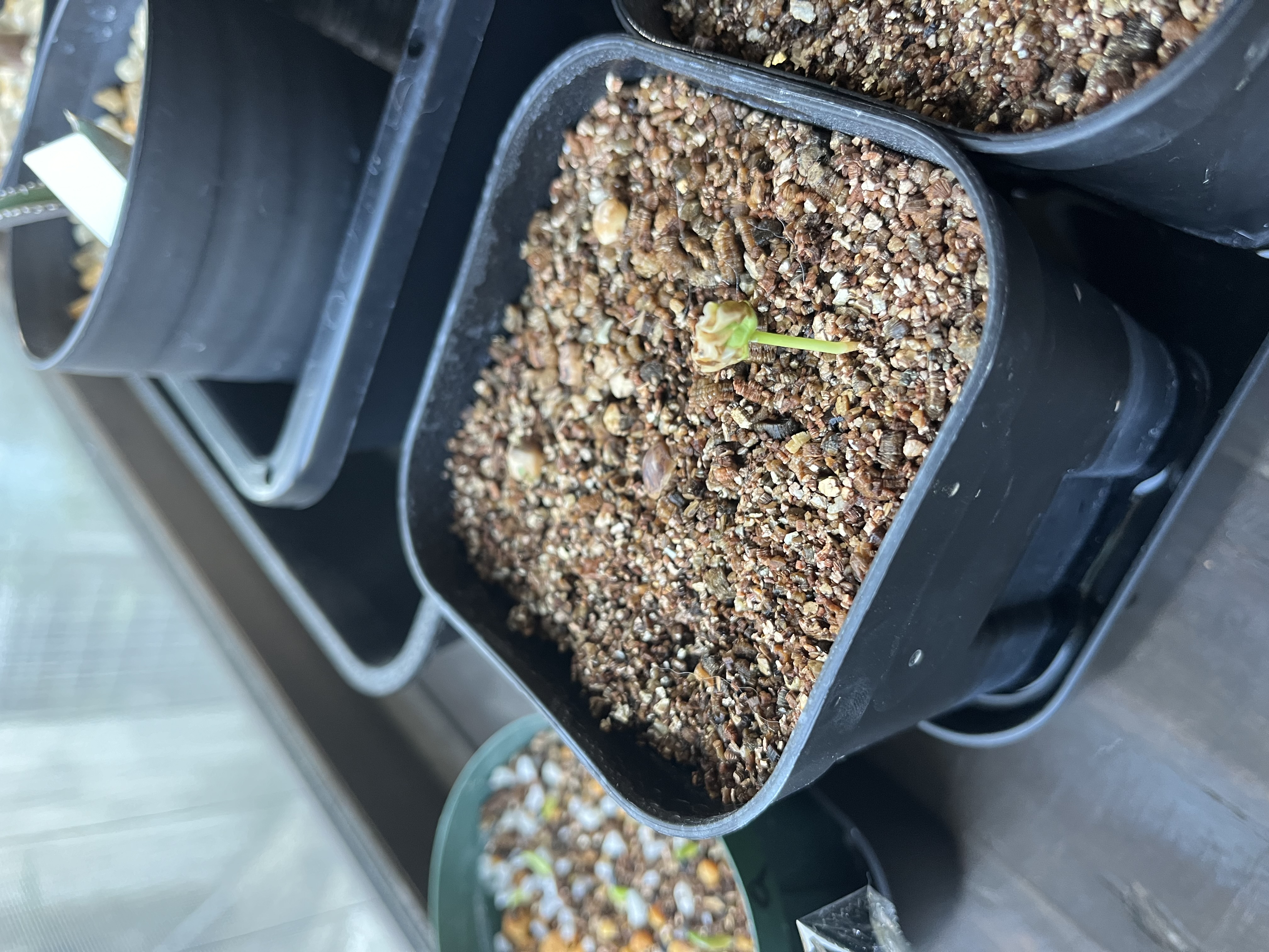 発芽したのは1粒…。[ その他(用土や管理方法など)]播種前にベントレート+メネデール溶液に1日程度浸漬赤玉メインの用土に細目のバーミキュライトを敷き播種、20度〜25度で管理