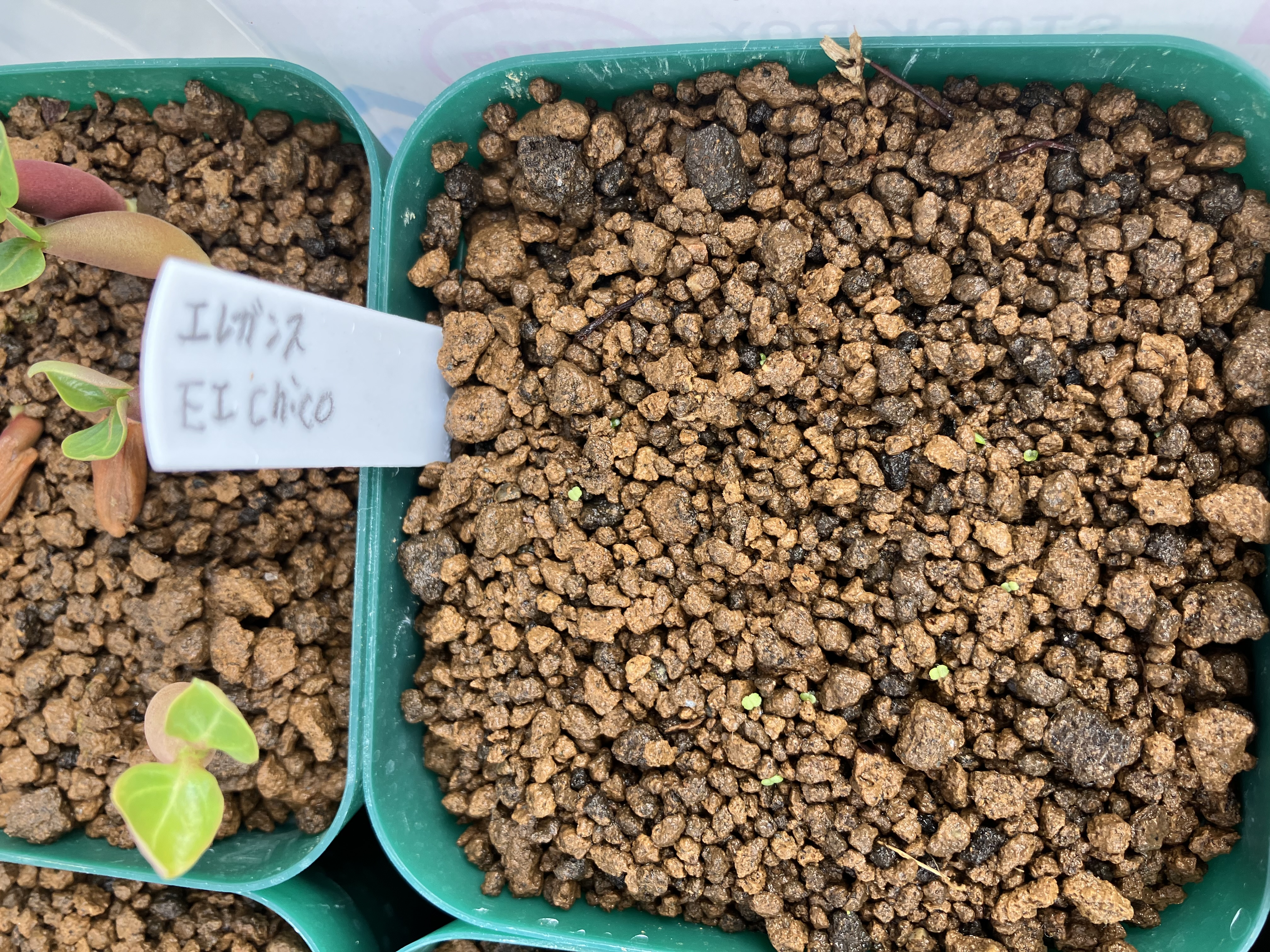 赤玉メインの用土にバーミキュライトを敷き播種、20度〜25度で管理