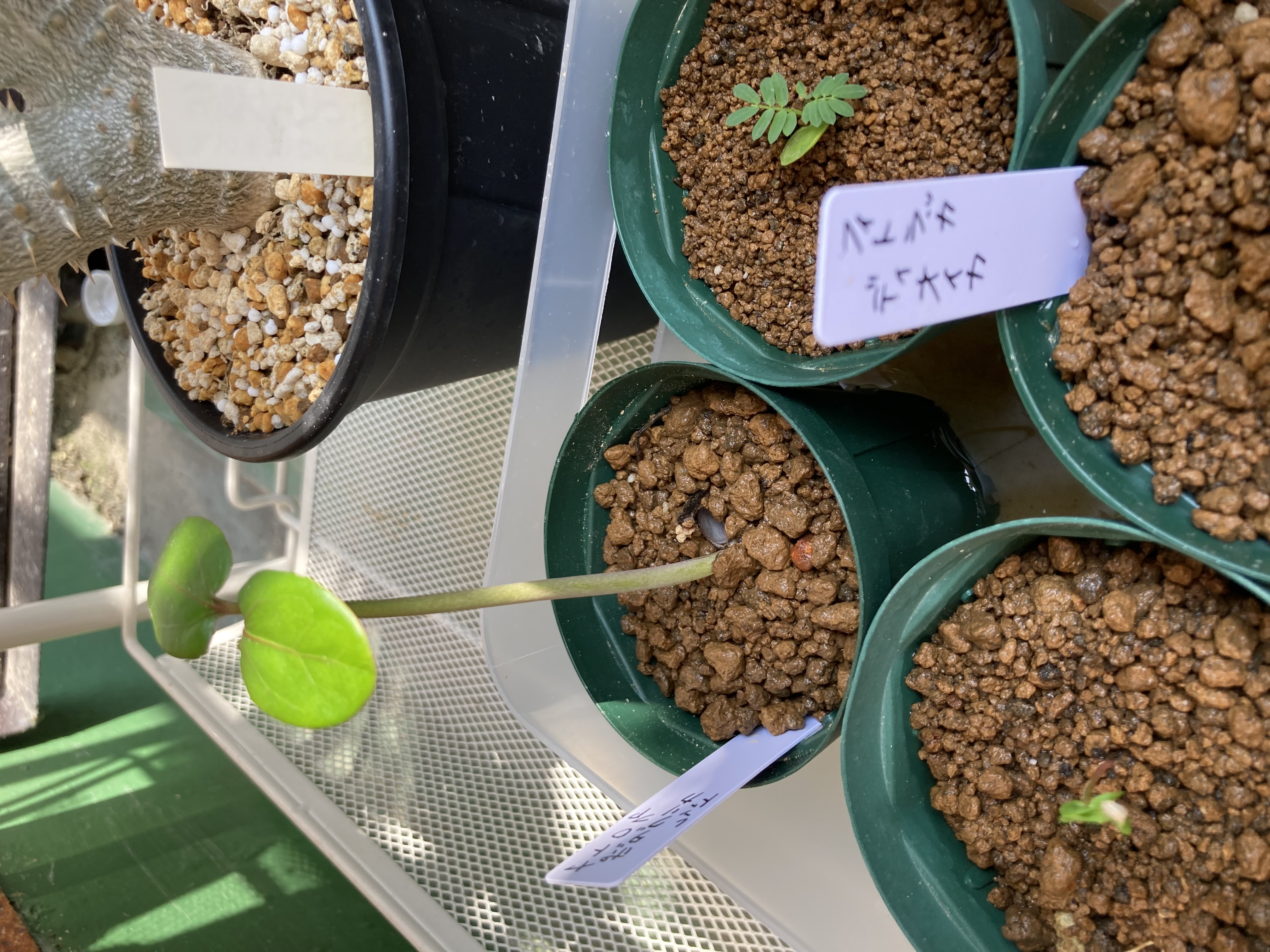 2024/5/24頃播種 2024/6/14撮影[ 播種数 / 発芽数 ]12粒/ 1粒[ その他(用土や管理方法など)]播種前にダコニール+メネデール溶液に1日程度浸漬赤玉小粒&細粒、覆土、遮光、腰水、発芽までは室内管理
