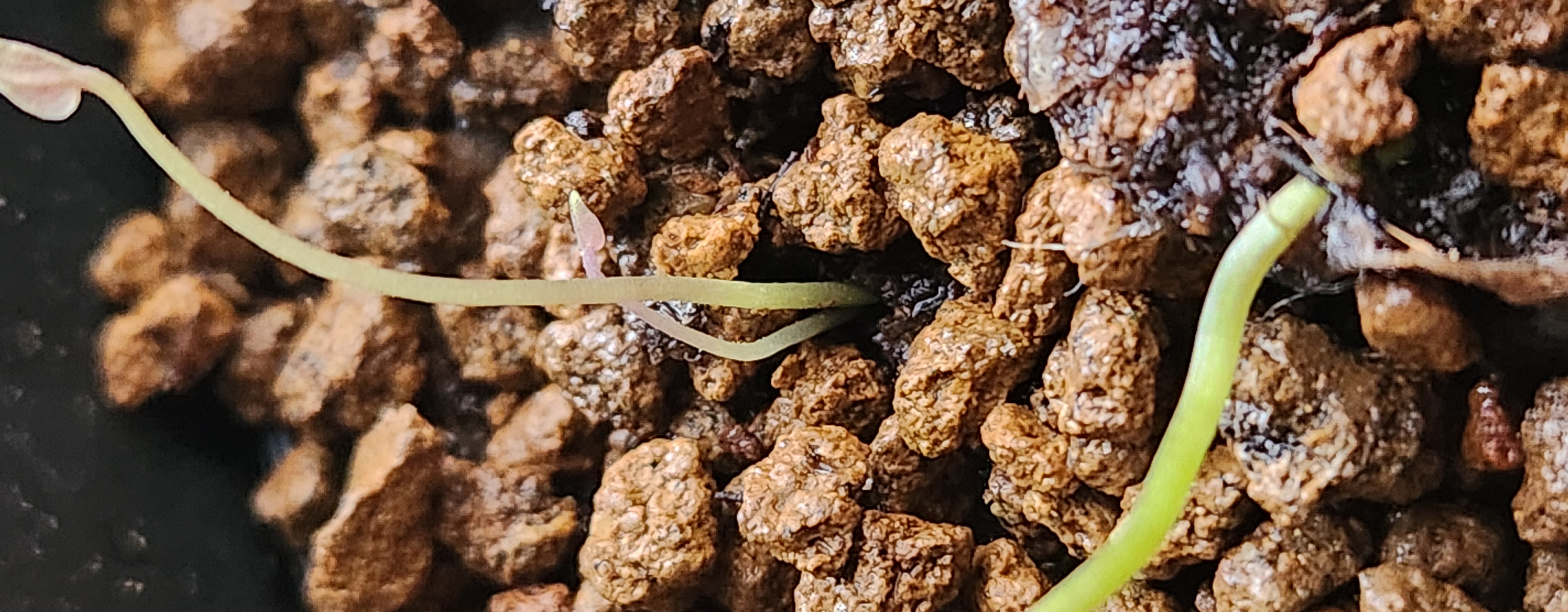 1つ目の発芽を確認してから鉢に植えて腰水をはじめ、今回の4つ目発芽となった。