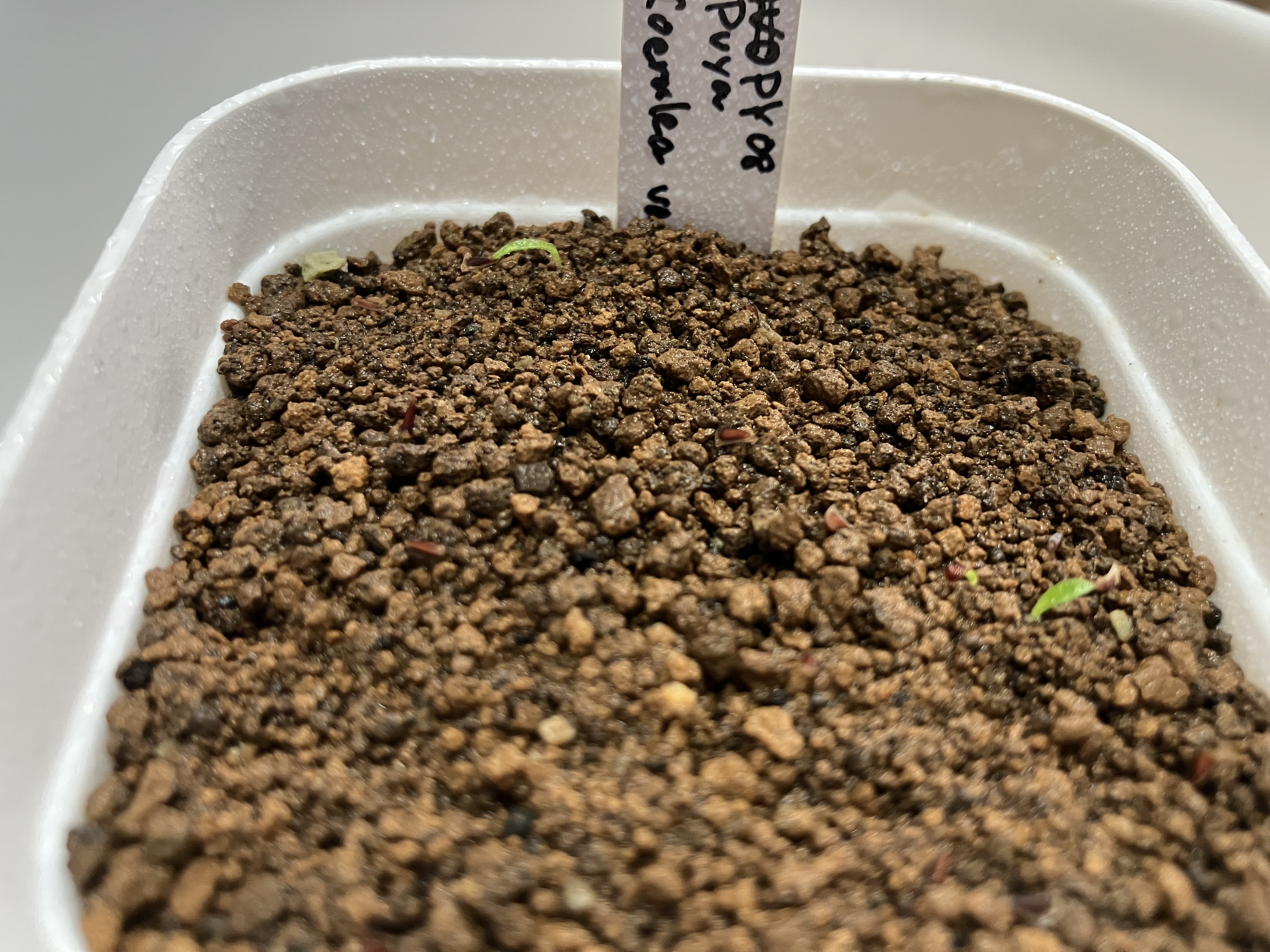 2024/5/25播種 2024/6/16撮影[ 播種数 / 発芽数 ]10粒(購入数)/2粒[ その他(用土や管理方法など)]播種前にオーソサイド+メネデール溶液に6時間程度浸漬赤玉極小単用