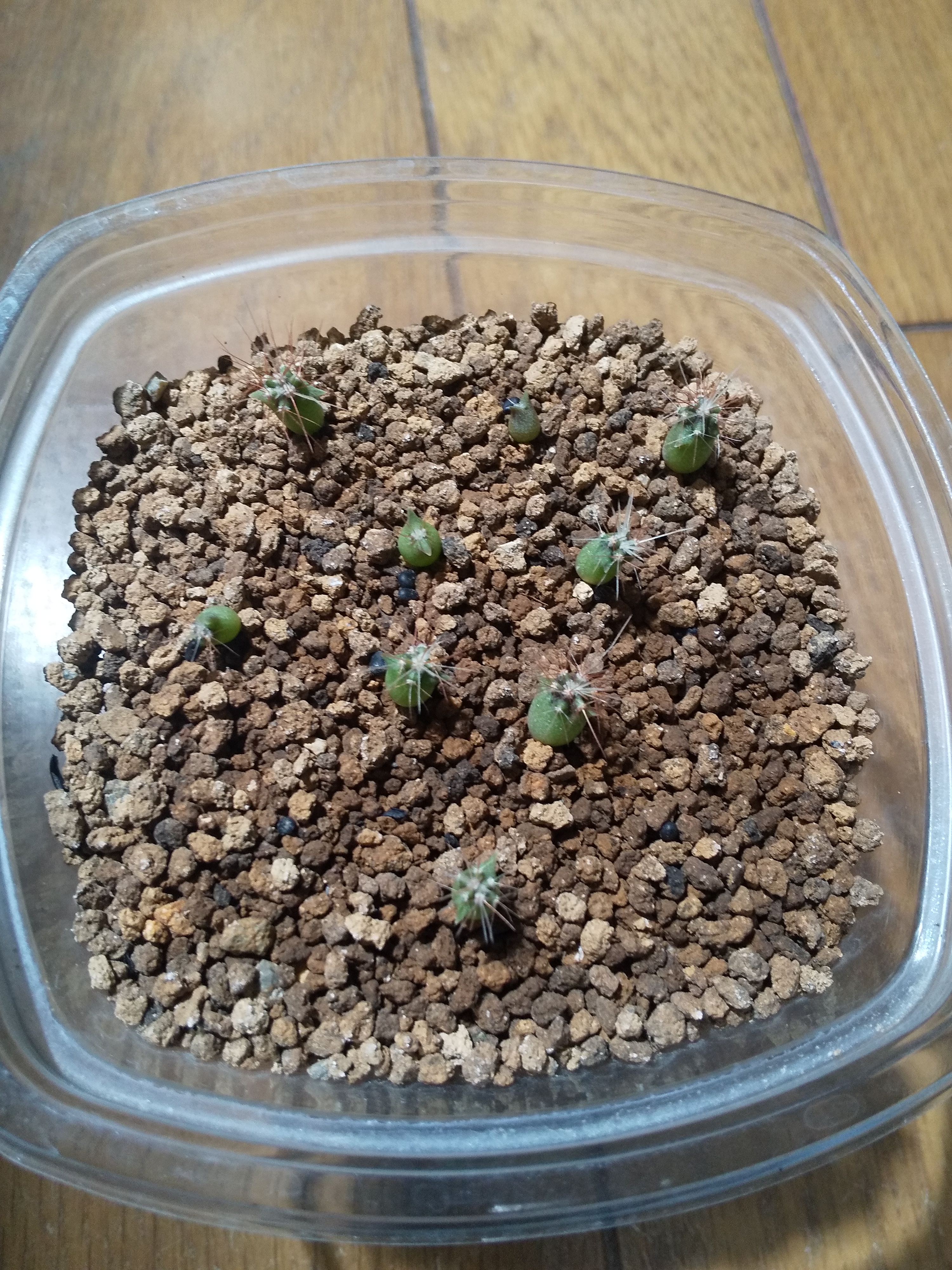 多肉用土に細目の赤玉土を薄く敷き播種 表面が乾いたらスプレーするだけ