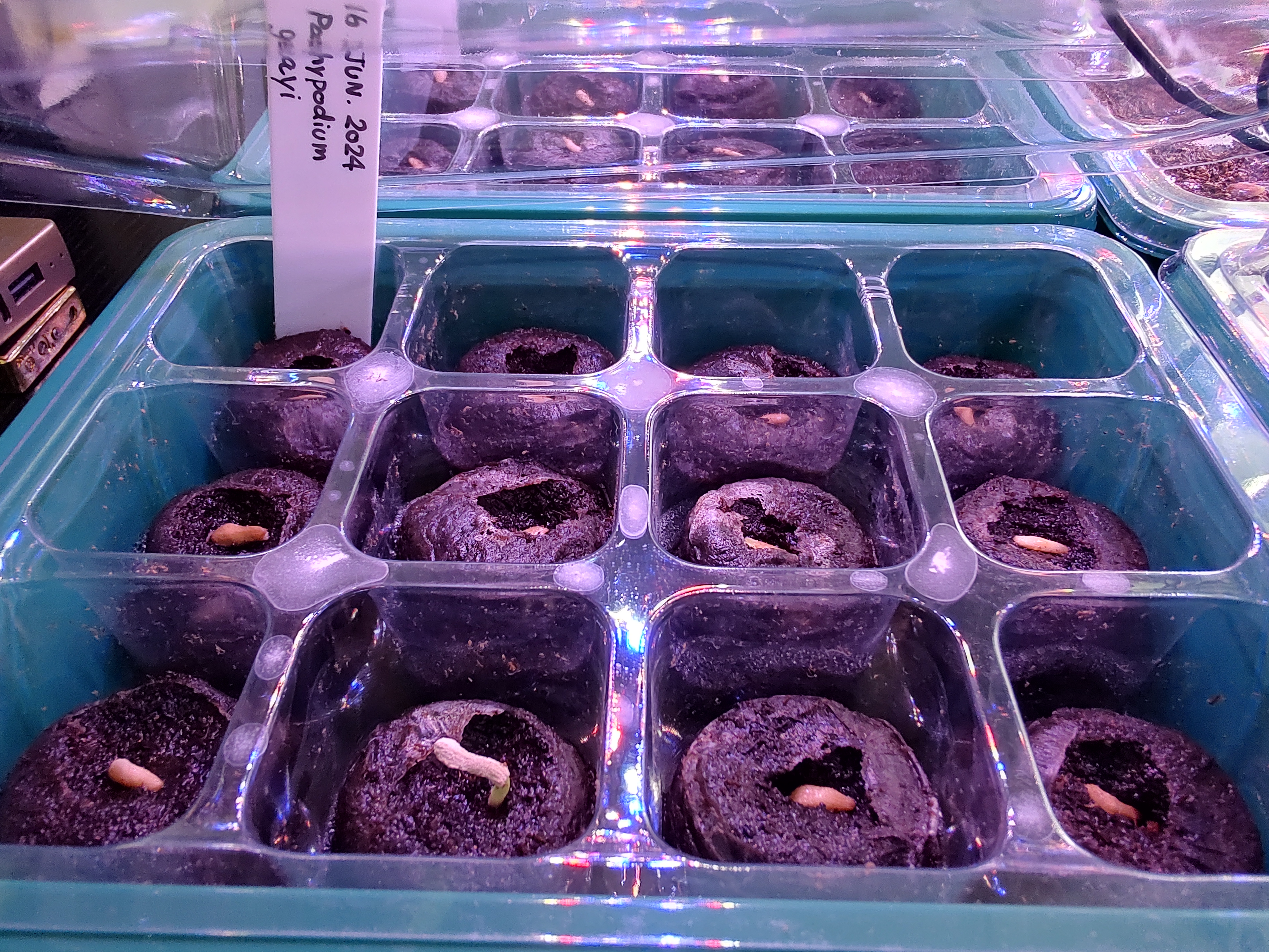 ジフィーセブン(2粒は赤玉土のみ)で播種、25度〜28度でLEDポッドで管理