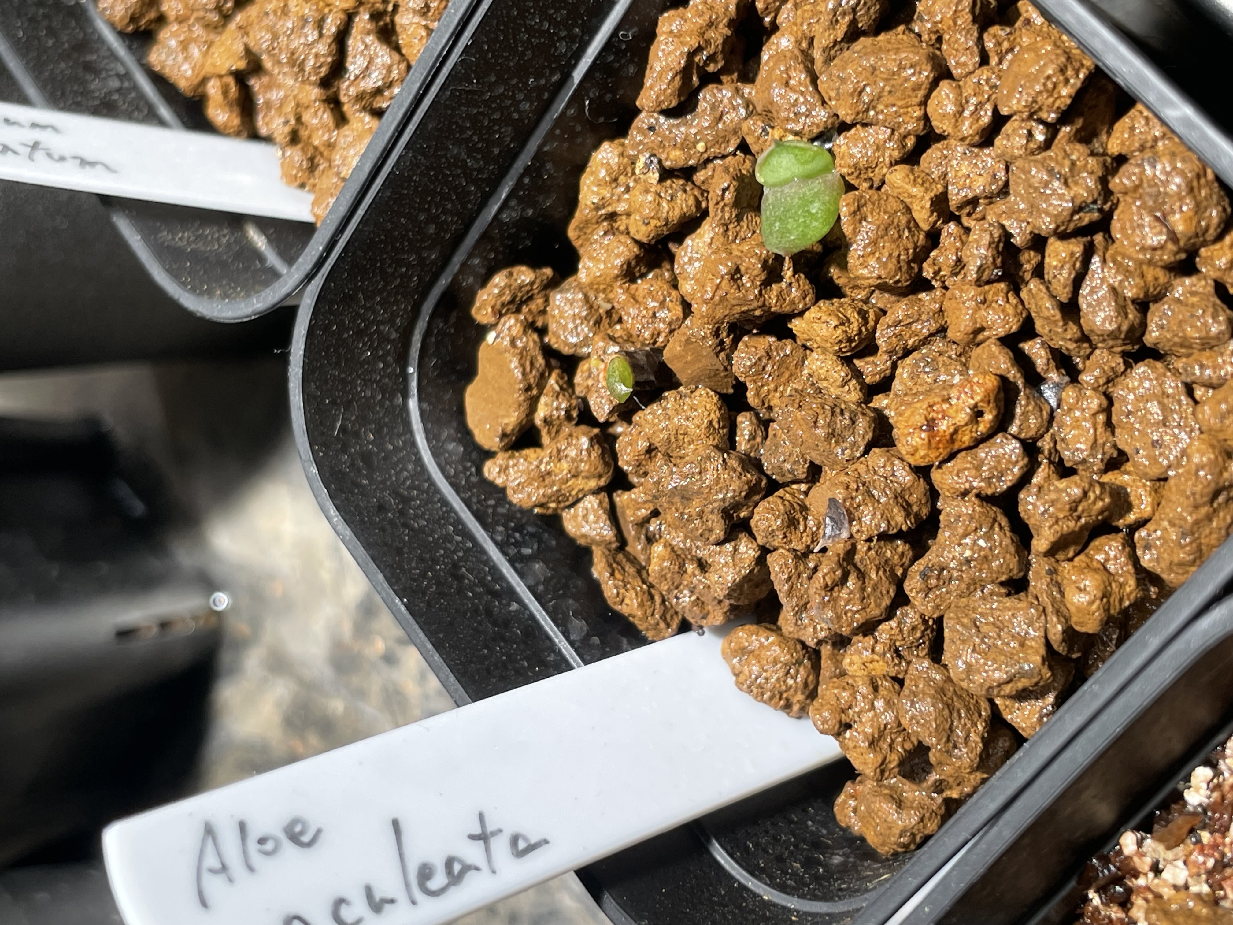 2024/5/14播種 2024/6/23撮影[ 播種数 / 発芽数 ]4粒/ 2粒[ その他(用土や管理方法など)]播種前にベンレート+メネデール溶液に1日程度浸漬、赤玉にそのまま。朝晩霧吹き。1週間程度で一つ発芽。
