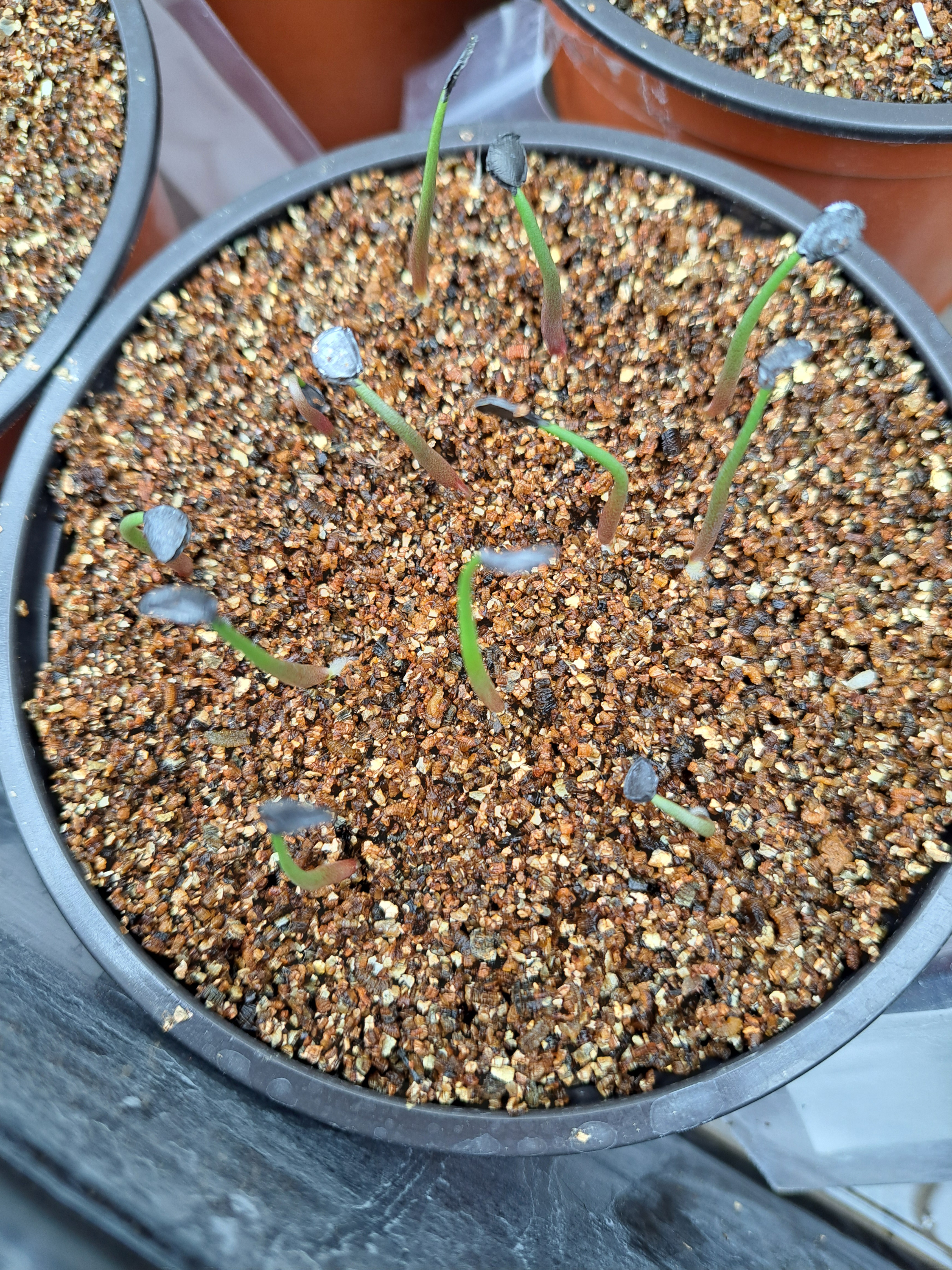 赤玉メインの用土に細目のバーミキュライトを敷き播種