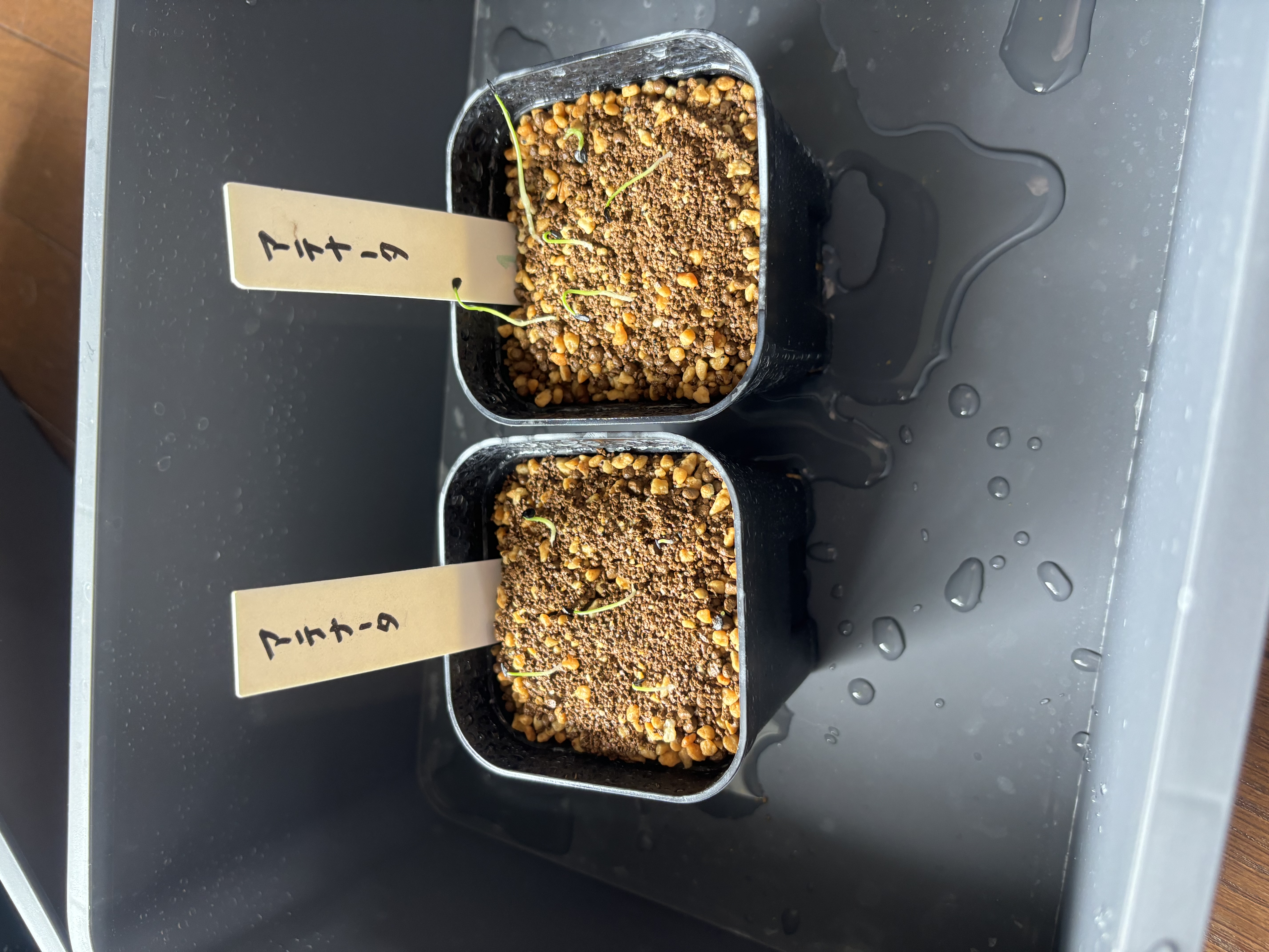 発芽まで育苗カバー被せて毎日ベンレート水溶液をスプレー。腰水管理。
