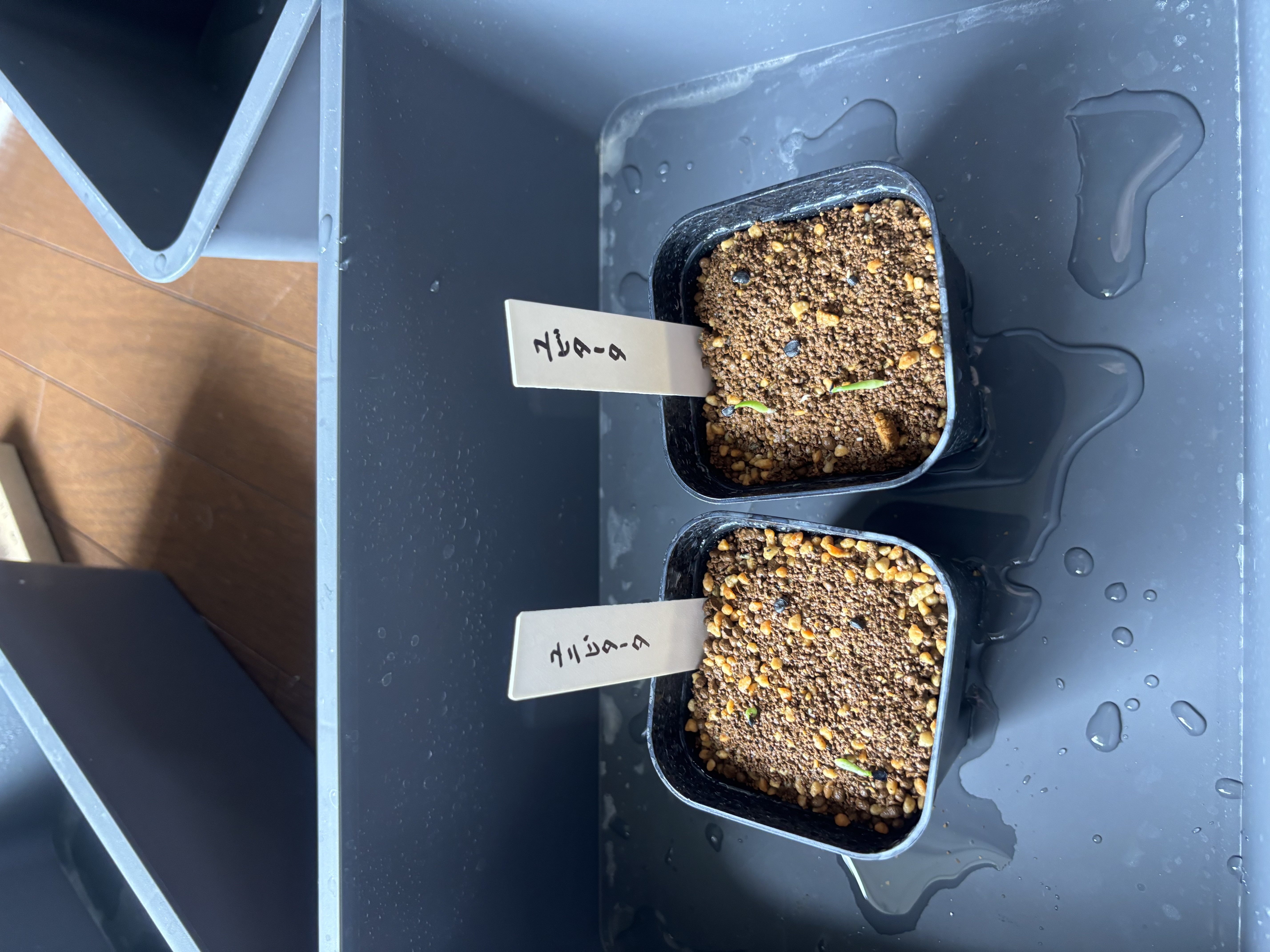 発芽まで育苗カバー被せて毎日ベンレート水溶液をスプレー。腰水管理。