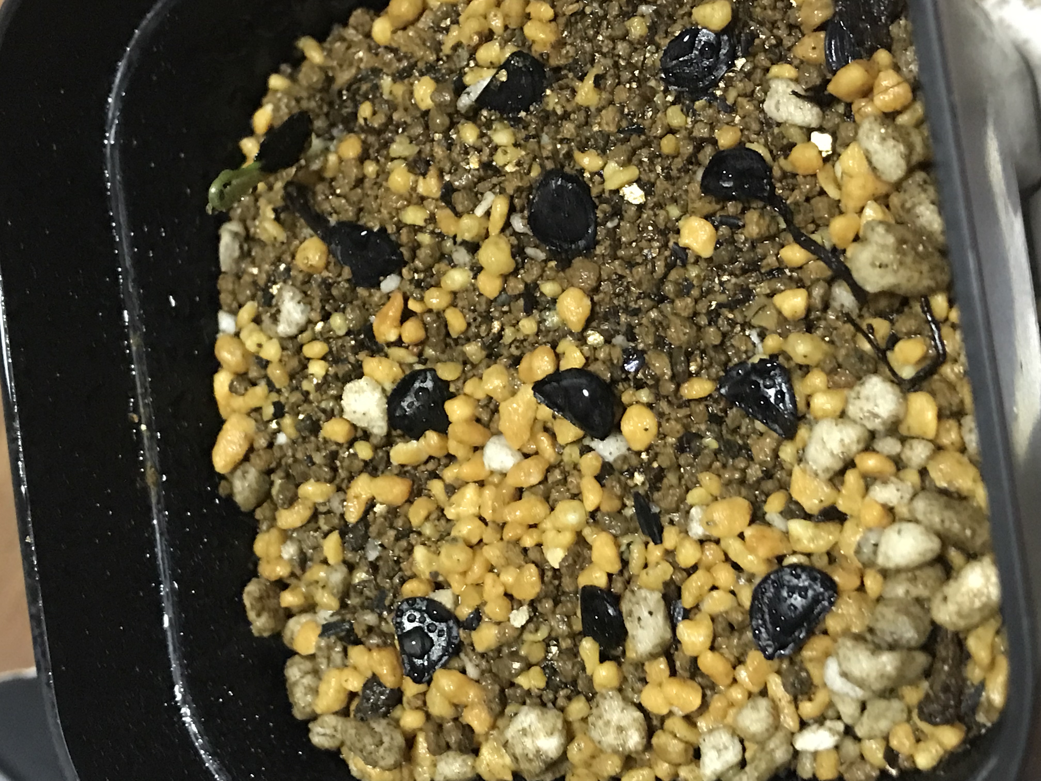 腰水を切らさず常温で1週間置いていたが発芽せず、プラケース温室に移したところ3日目で1粒の発芽を確認
