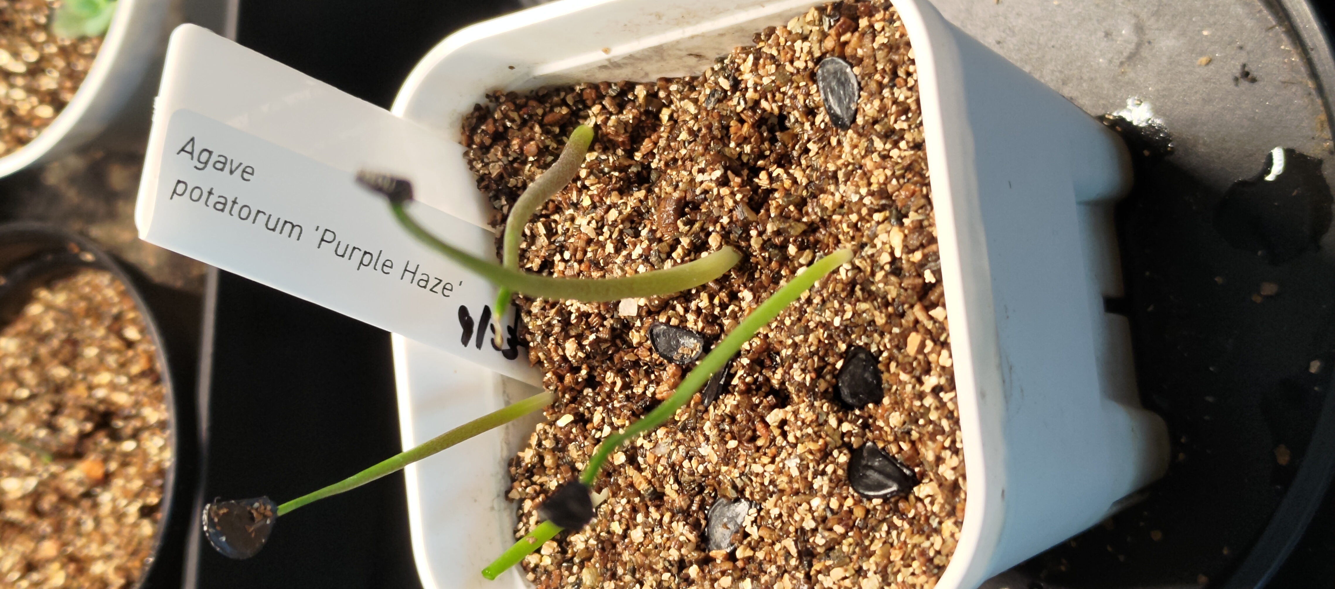 9月20日に6粒播種4日で4/6発芽用土50%バーミキュライト上半分赤玉土小粒下半分1.5センチ腰水...