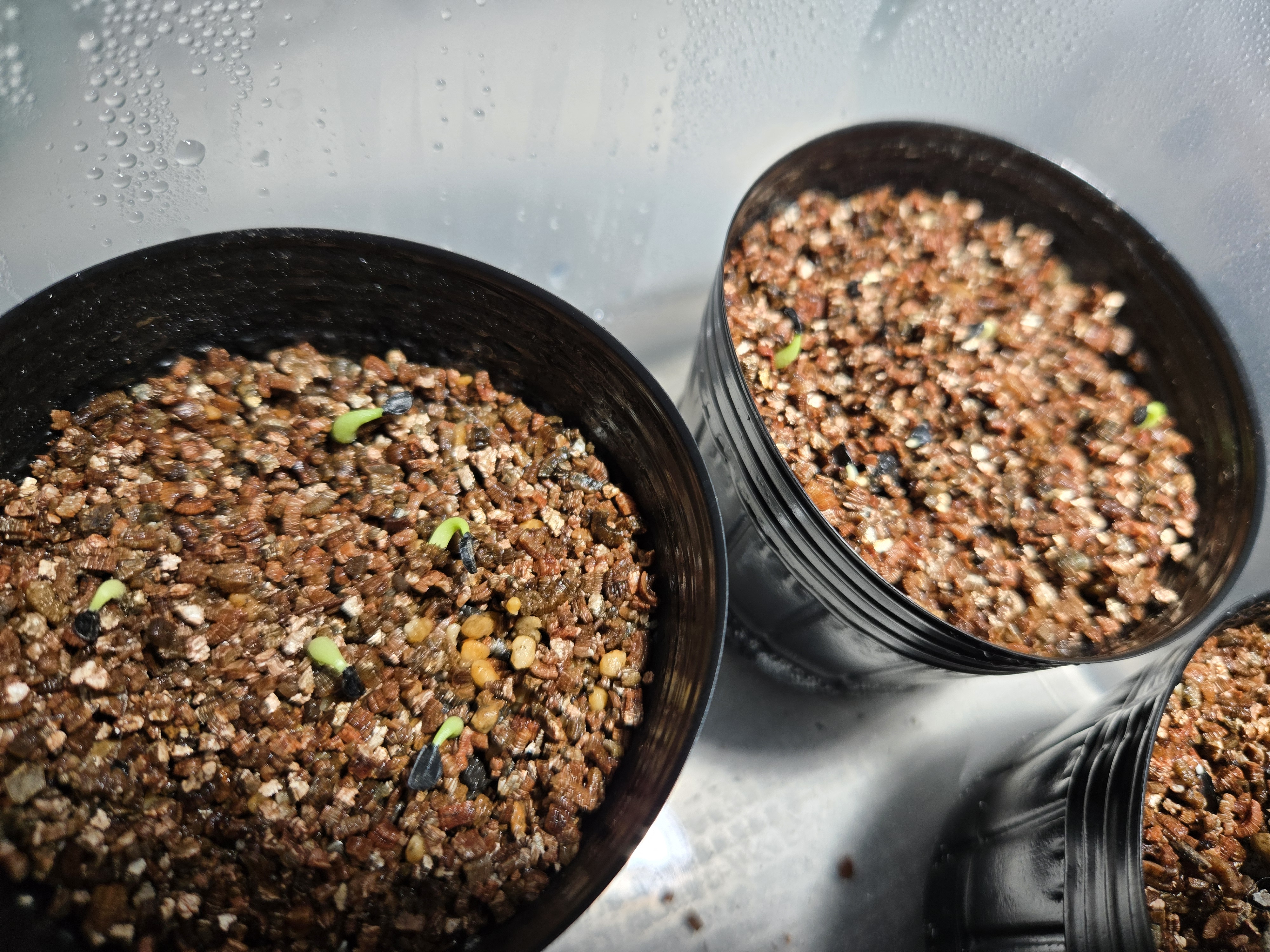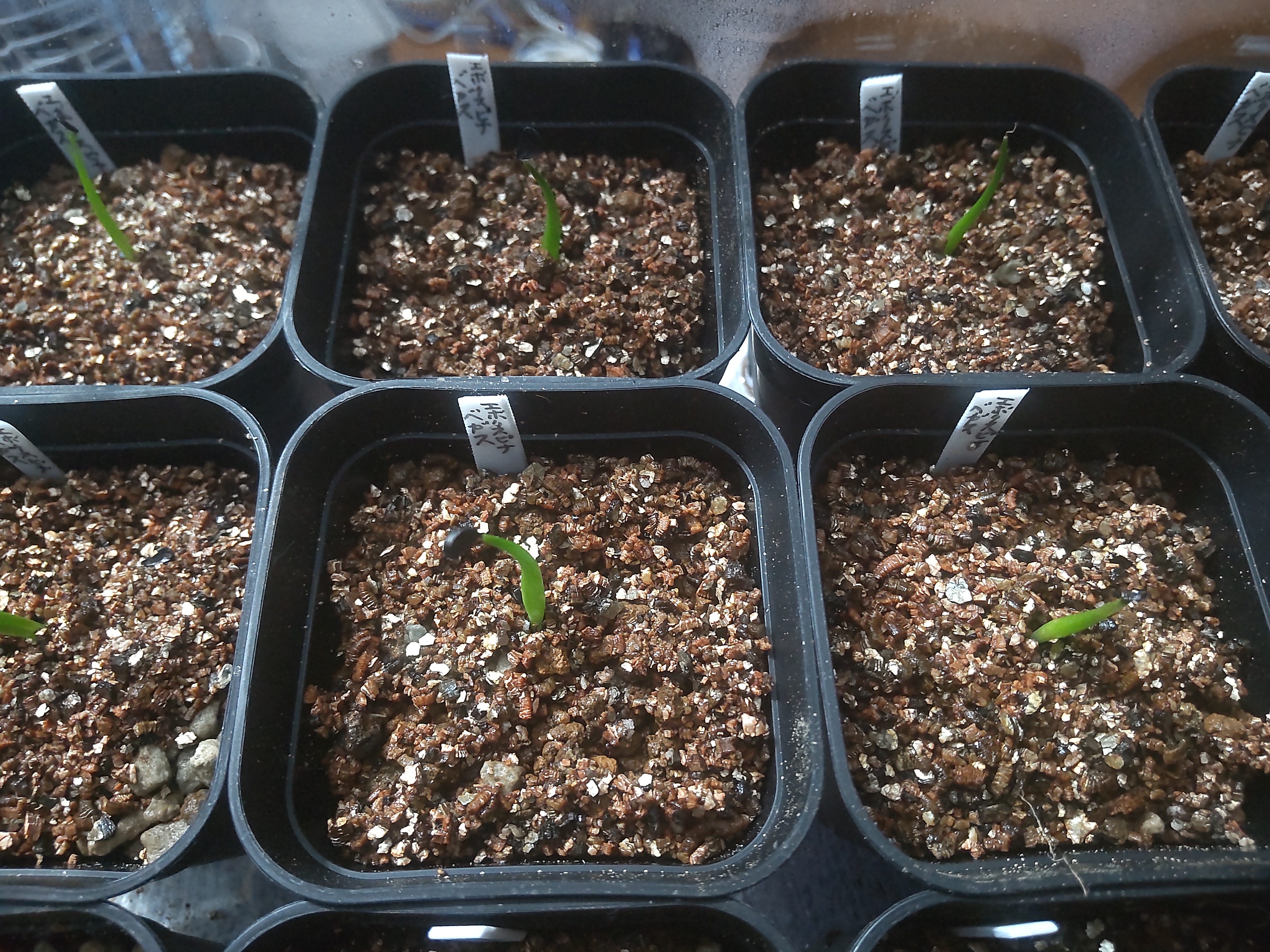 2025/1/11播種 2025/1/26撮影6播種/5発芽ベンレートとメネデール溶液に一晩つけた後...