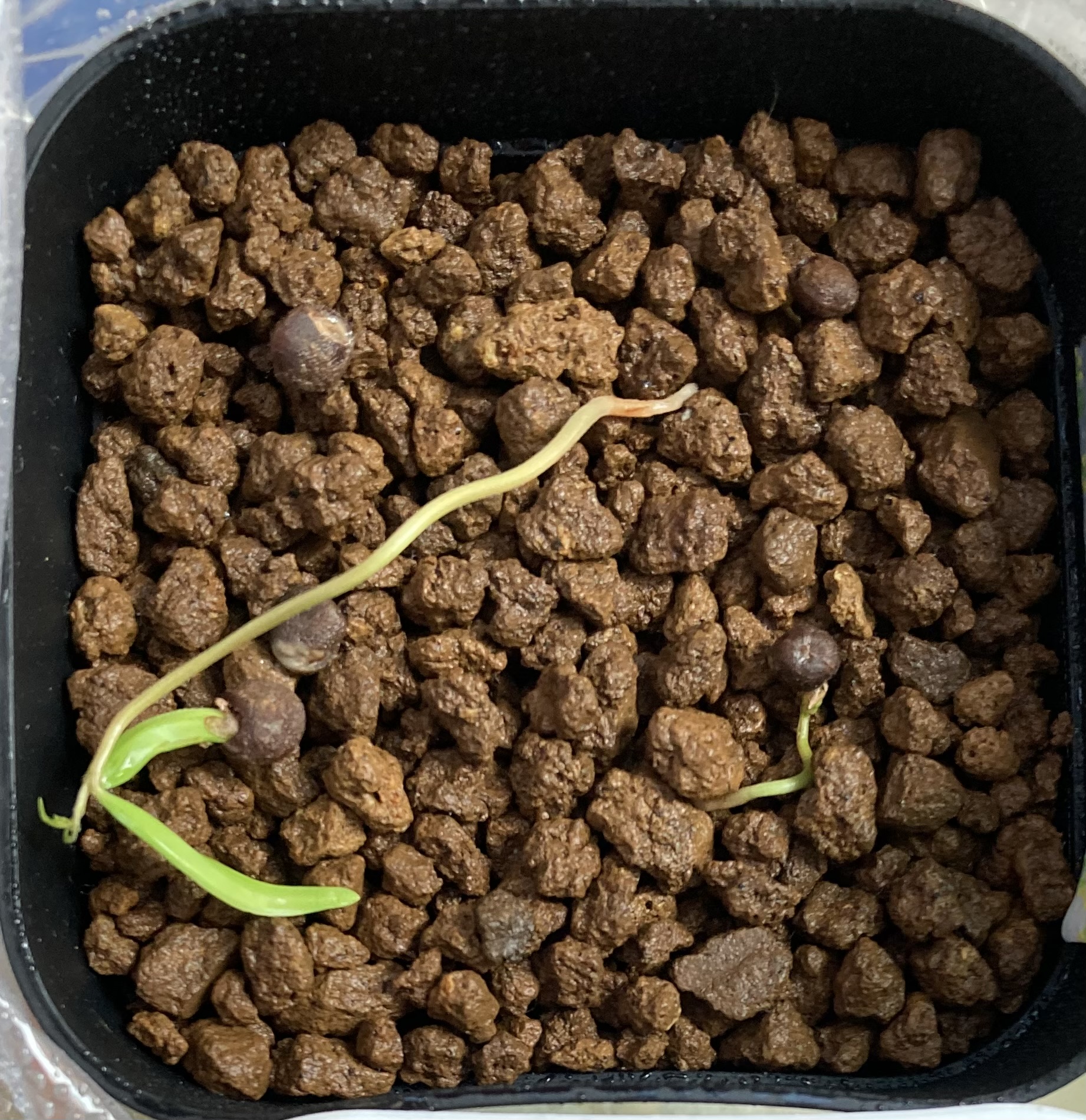 • 2024年9月30日播種 2024年10月11日撮影5粒播種/1粒発芽播種前に8時間水道水に浸し、多...