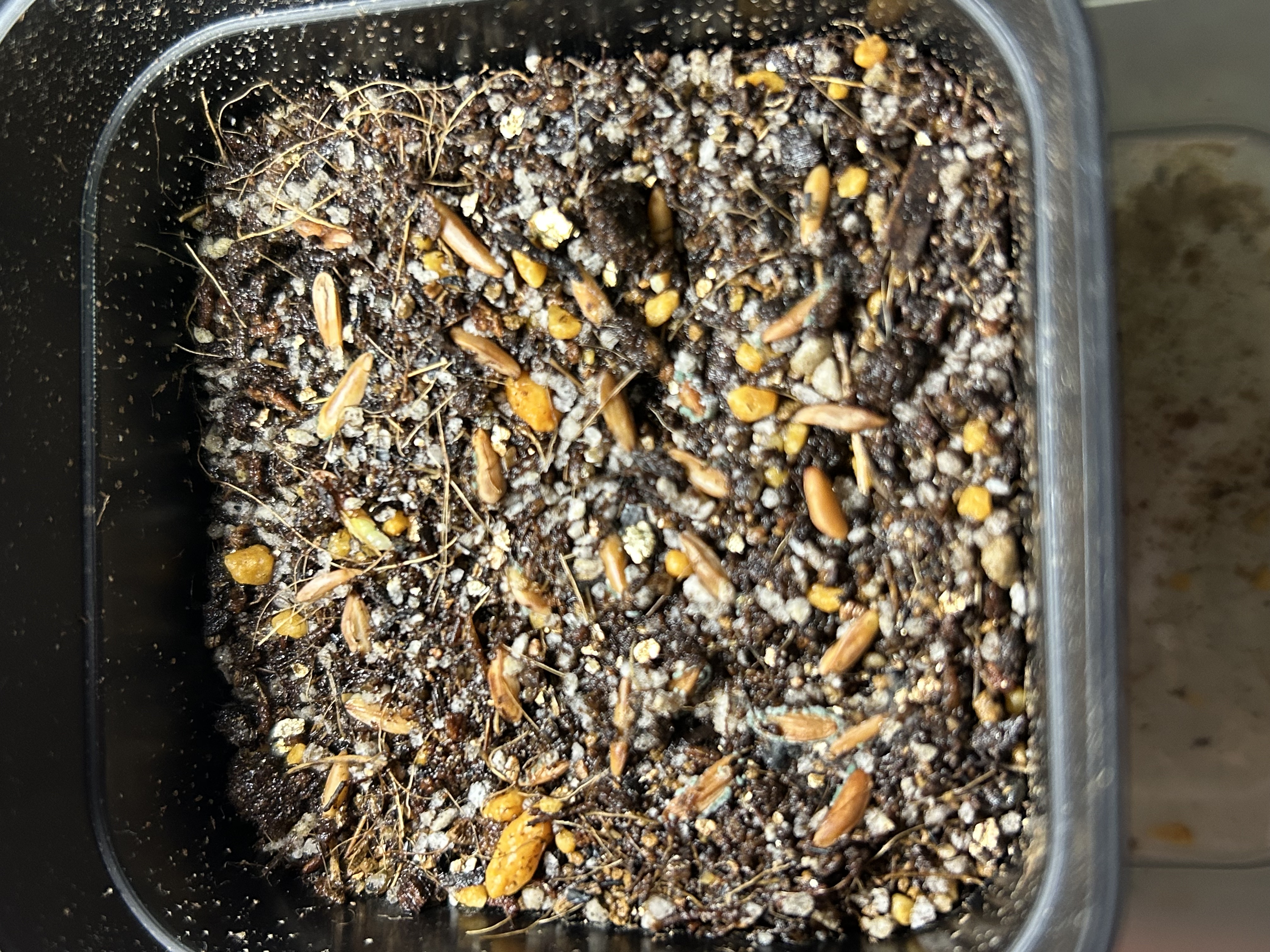 2024年8月4日播種/8月12日撮影22粒中13粒発芽種まき用土に覆土せずバラバラにまいた。場所は...