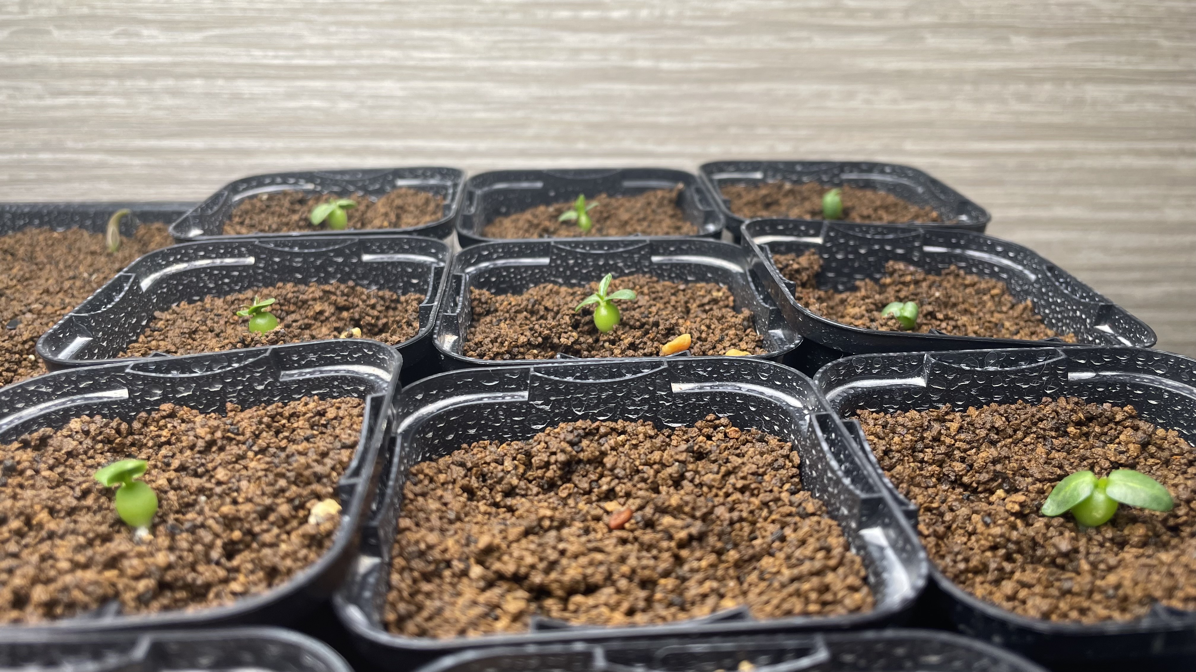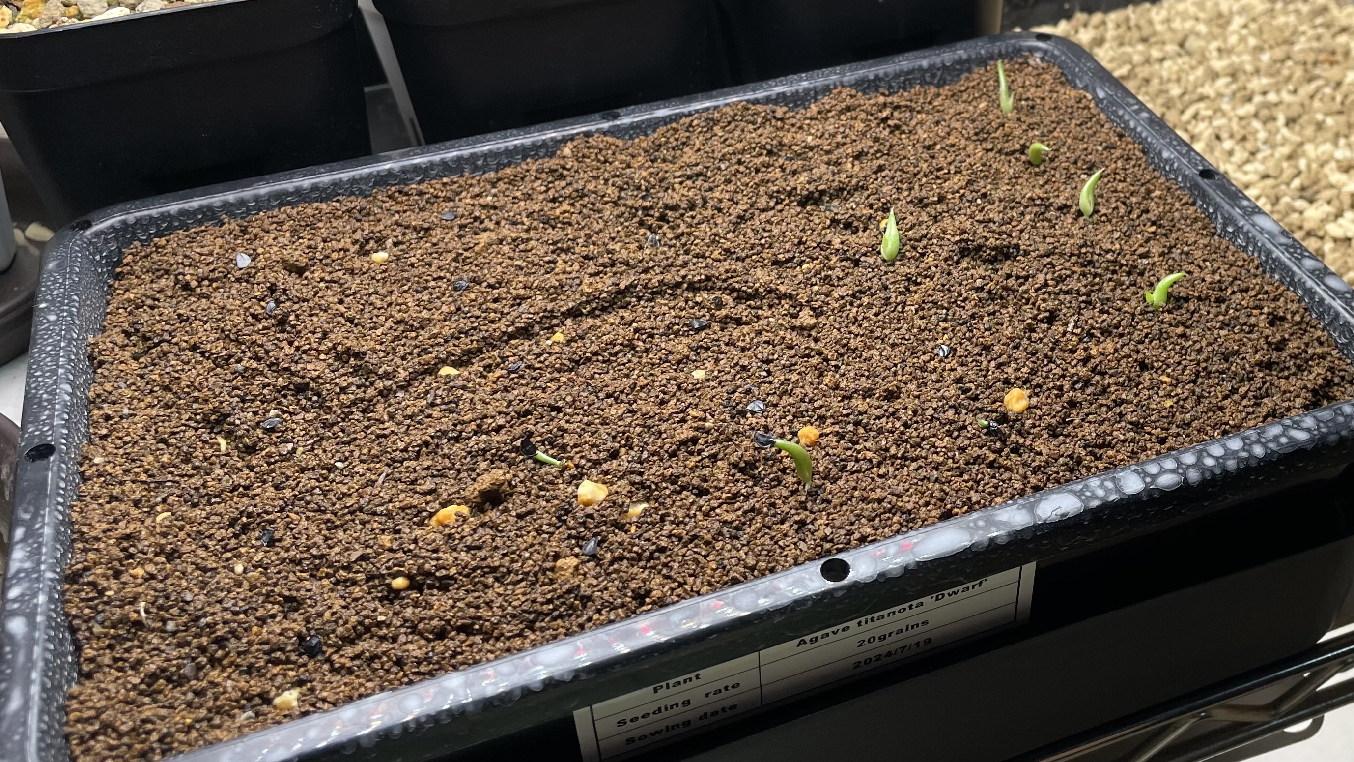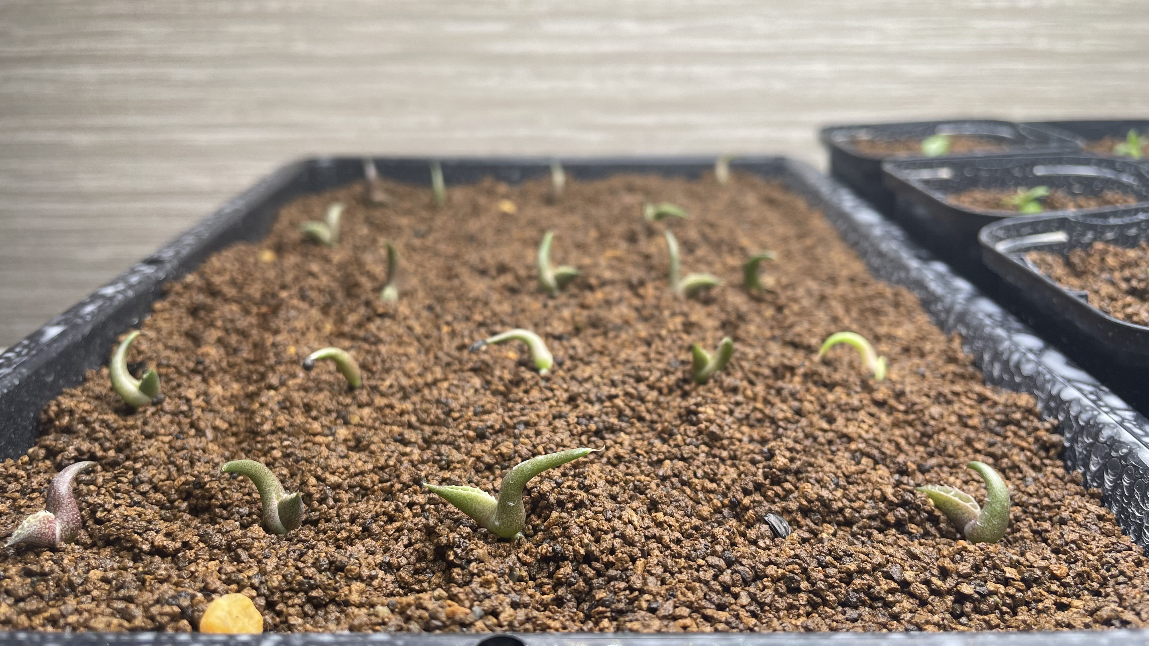 2024/8/13播種2024/8/15撮影播種数8/発芽6播種前にメネデール溶液に1日つけつけた後...