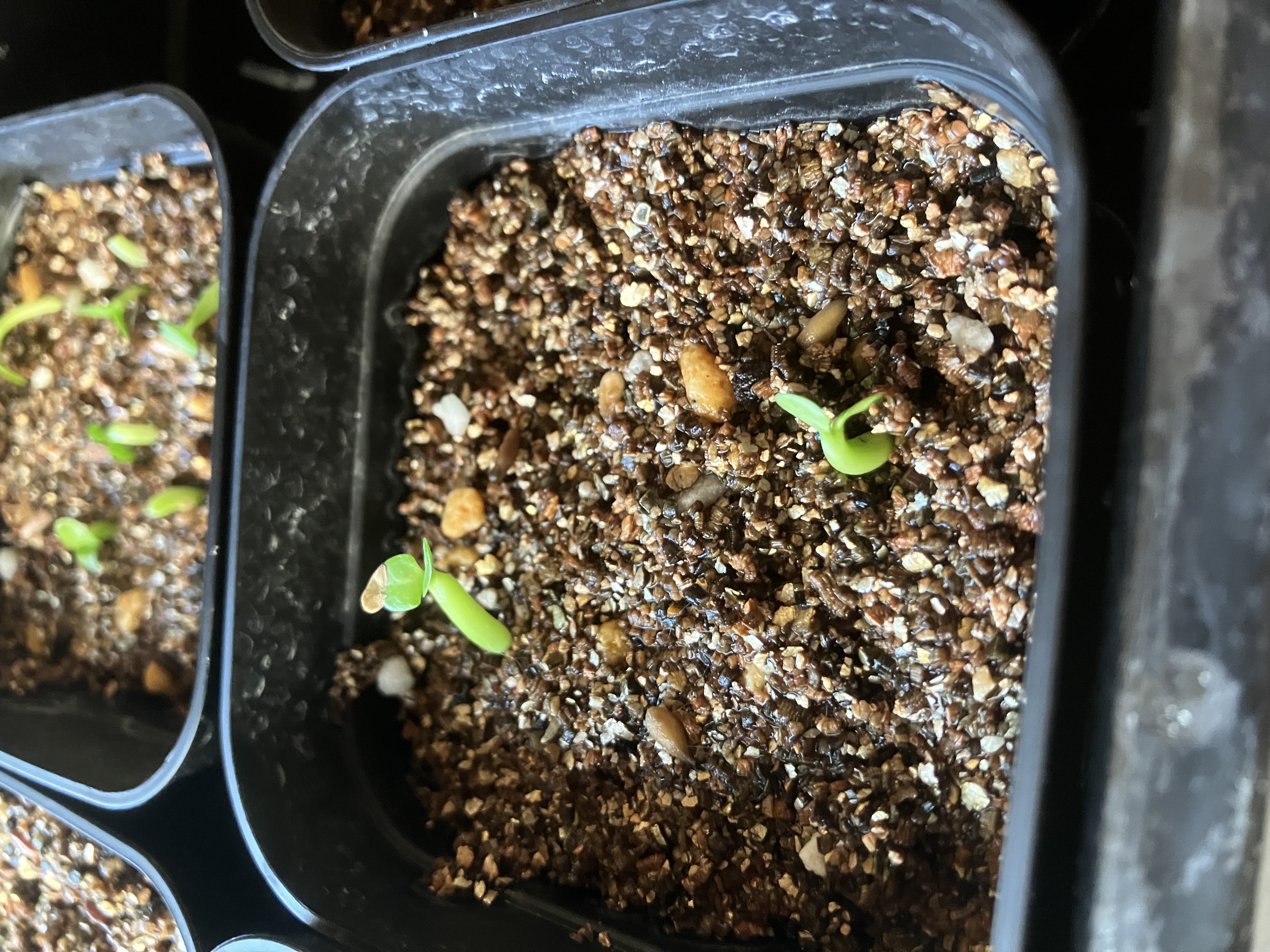 播種7/29撮影8/85粒/2粒播種前にダコニール+メネデール溶液に1日程度浸漬赤玉メインの用土に細...