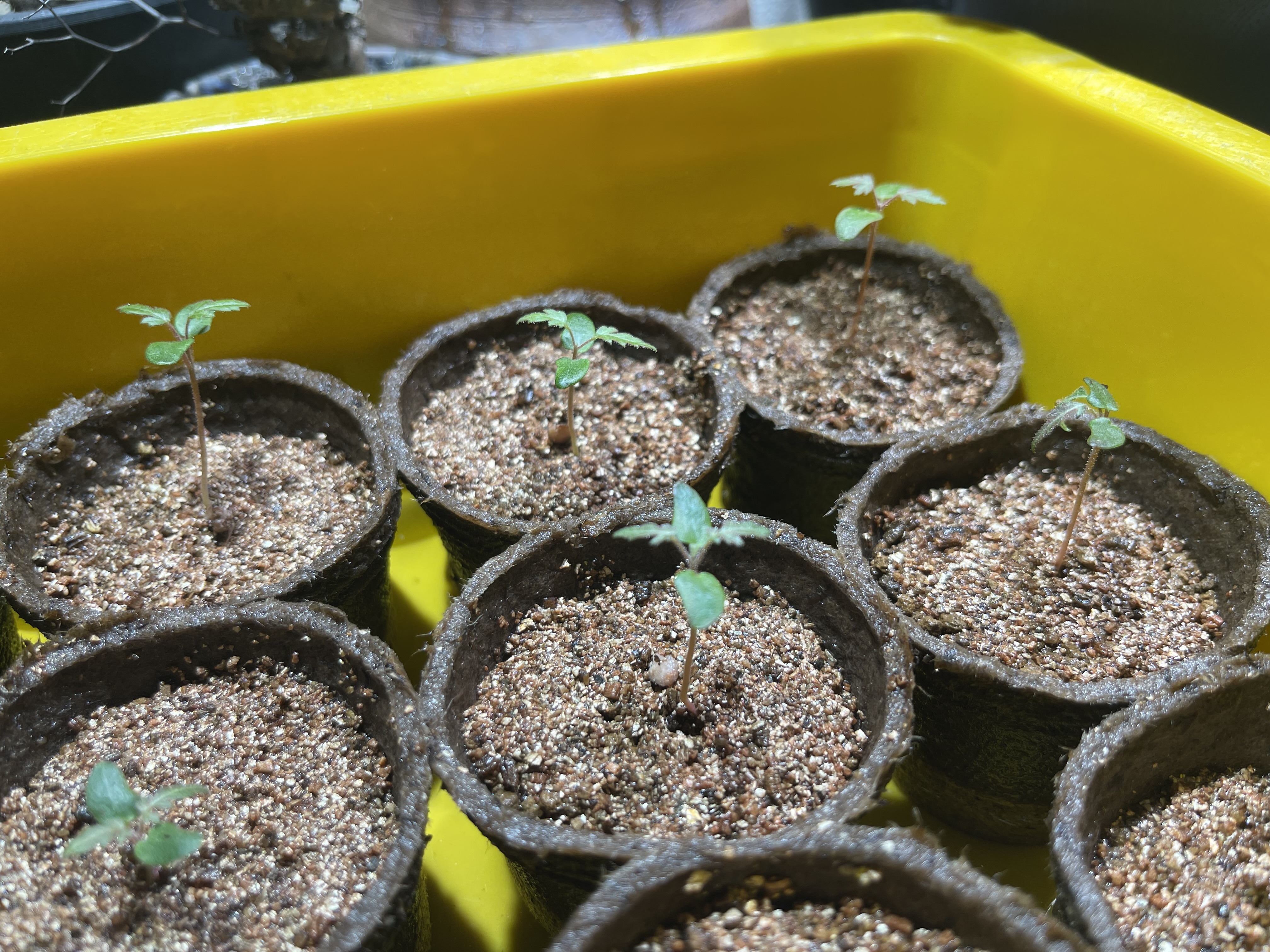 4月22日に播種一週間で15粒中11粒が発芽播種よりメネデール溶液での腰水管理。播種より1ヶ月目 ...
