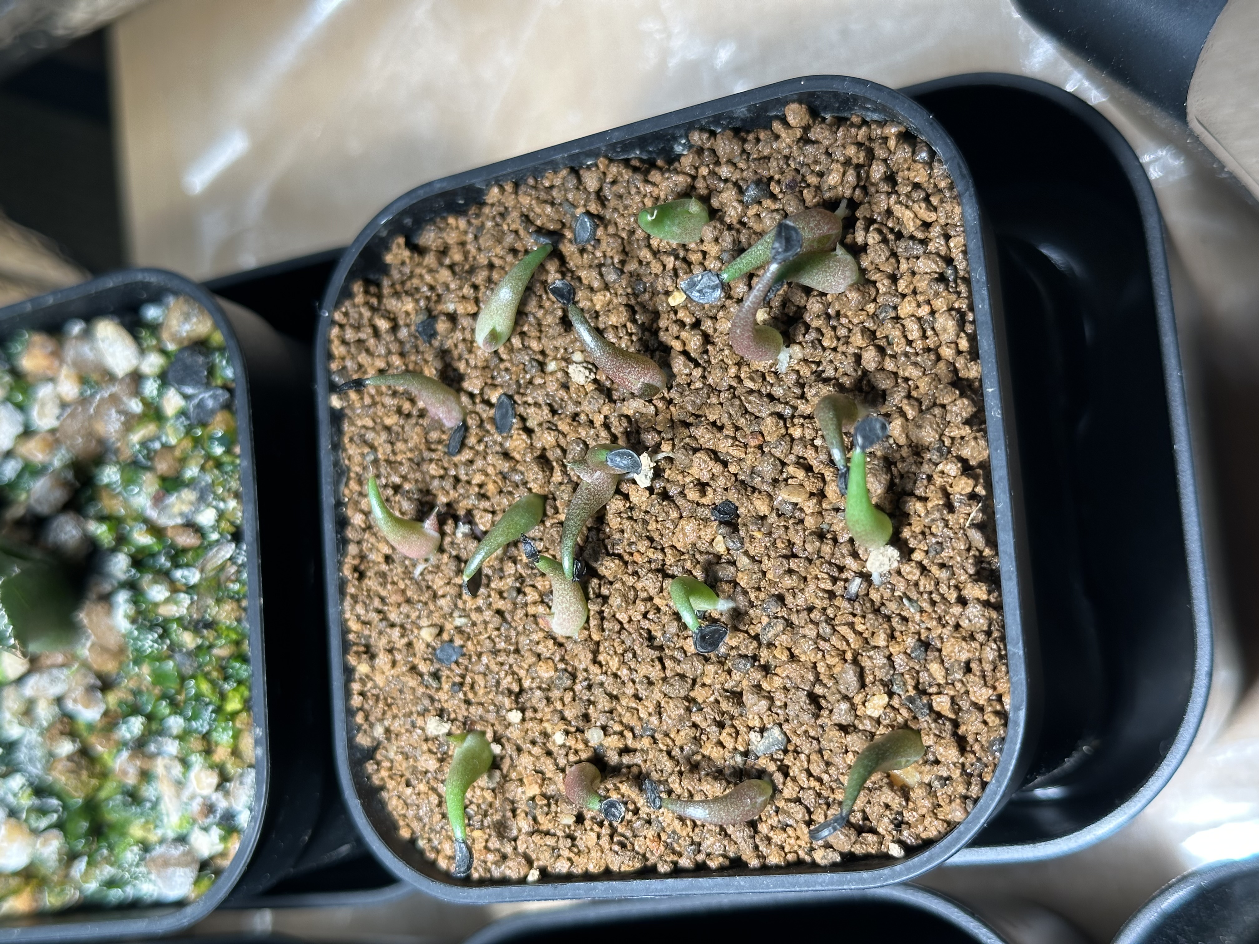 以前ギラウミニアナ種子の取り違えにて発芽した子達。少しづつ塊根部が大きくなってます。この種もレアな植...
