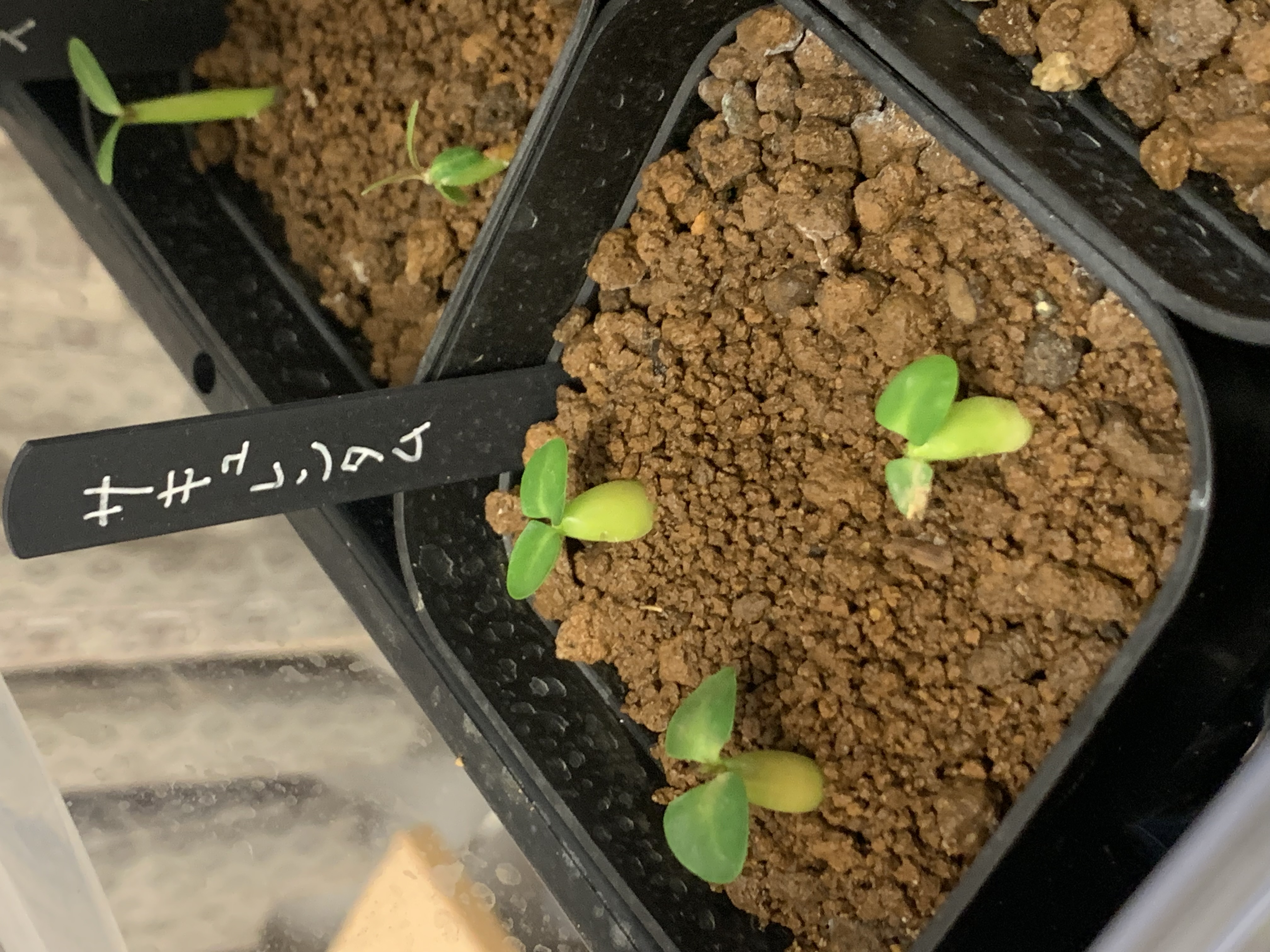 2024/6/14播種 2024/6/27撮影27粒中/ 5粒 発芽率18%播種前にベンレート+メネ...