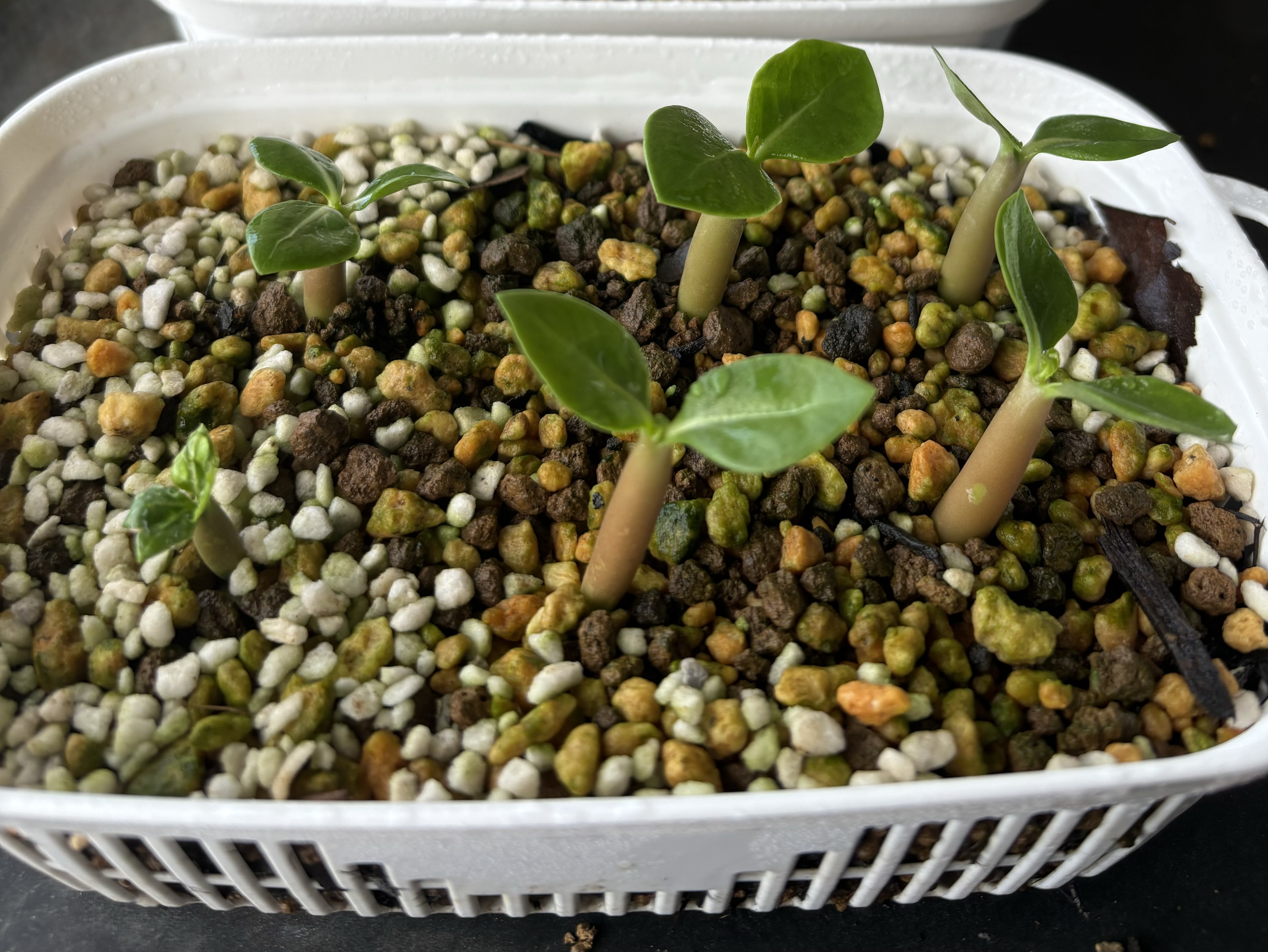 6月8日種まき6 発芽数5 撮影日6月29日写真奥のPNW Adenium arabicum ph...