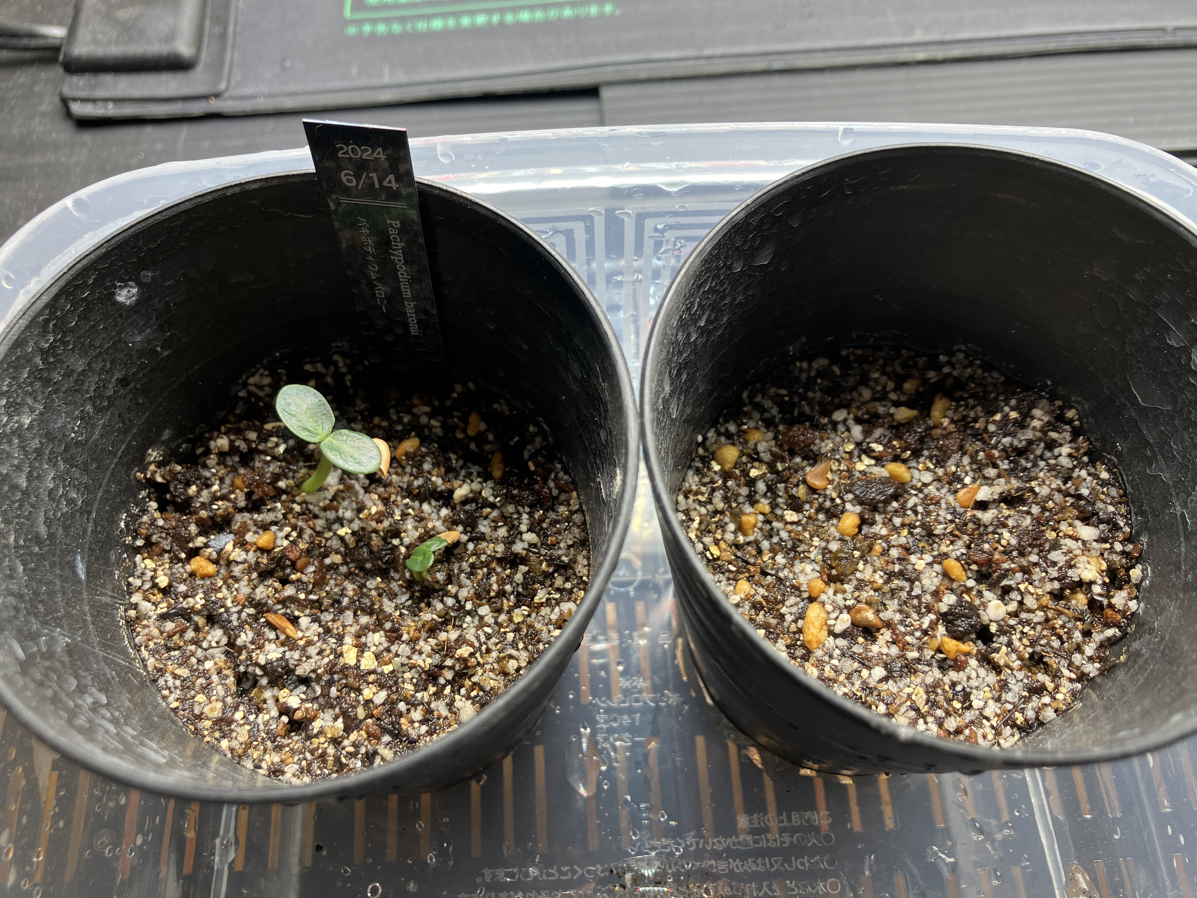 2024/6/14播種 2024/6/27撮影6粒中/ 2粒 発芽率30%播種前にベンレート+メネデ...