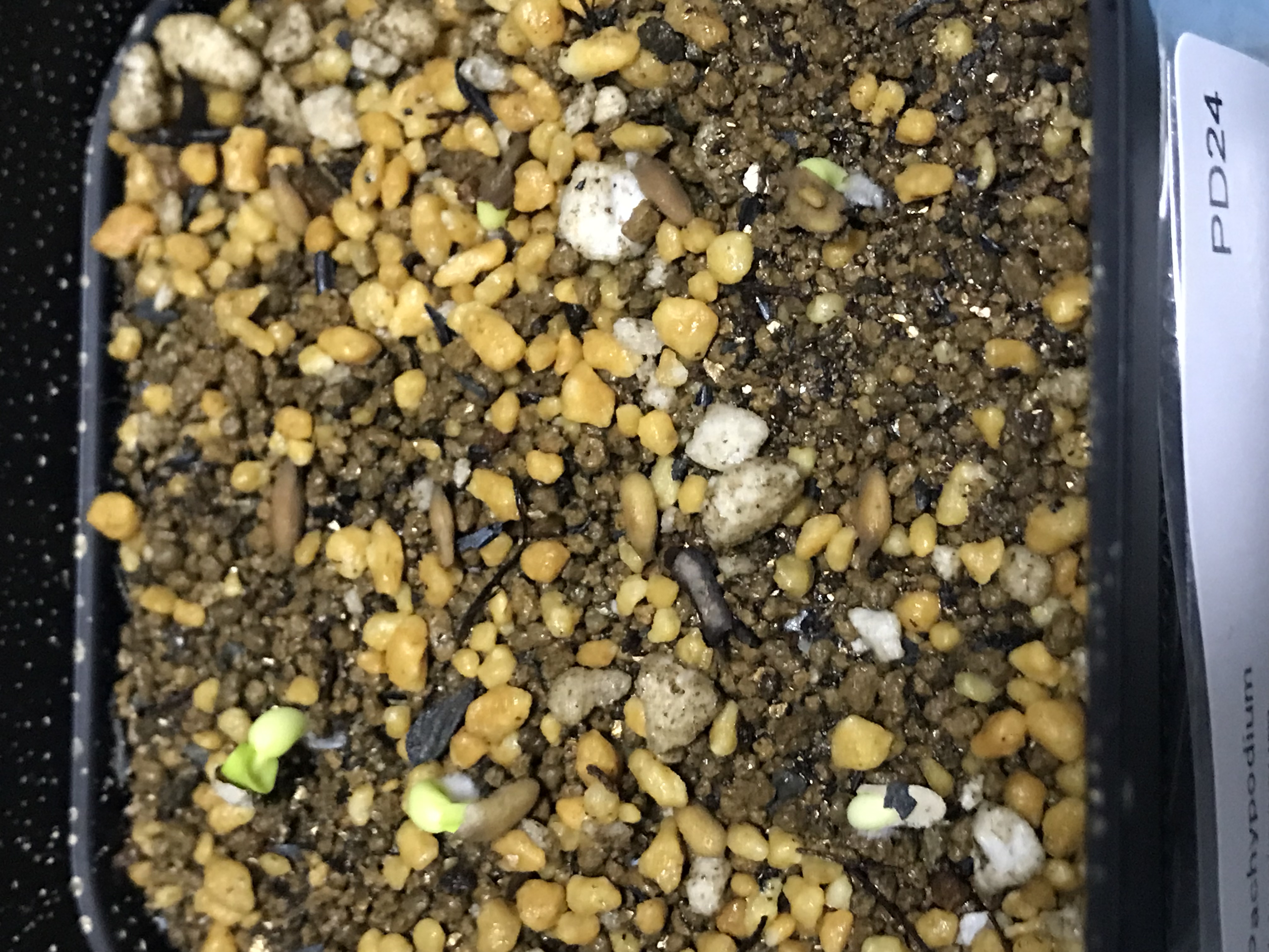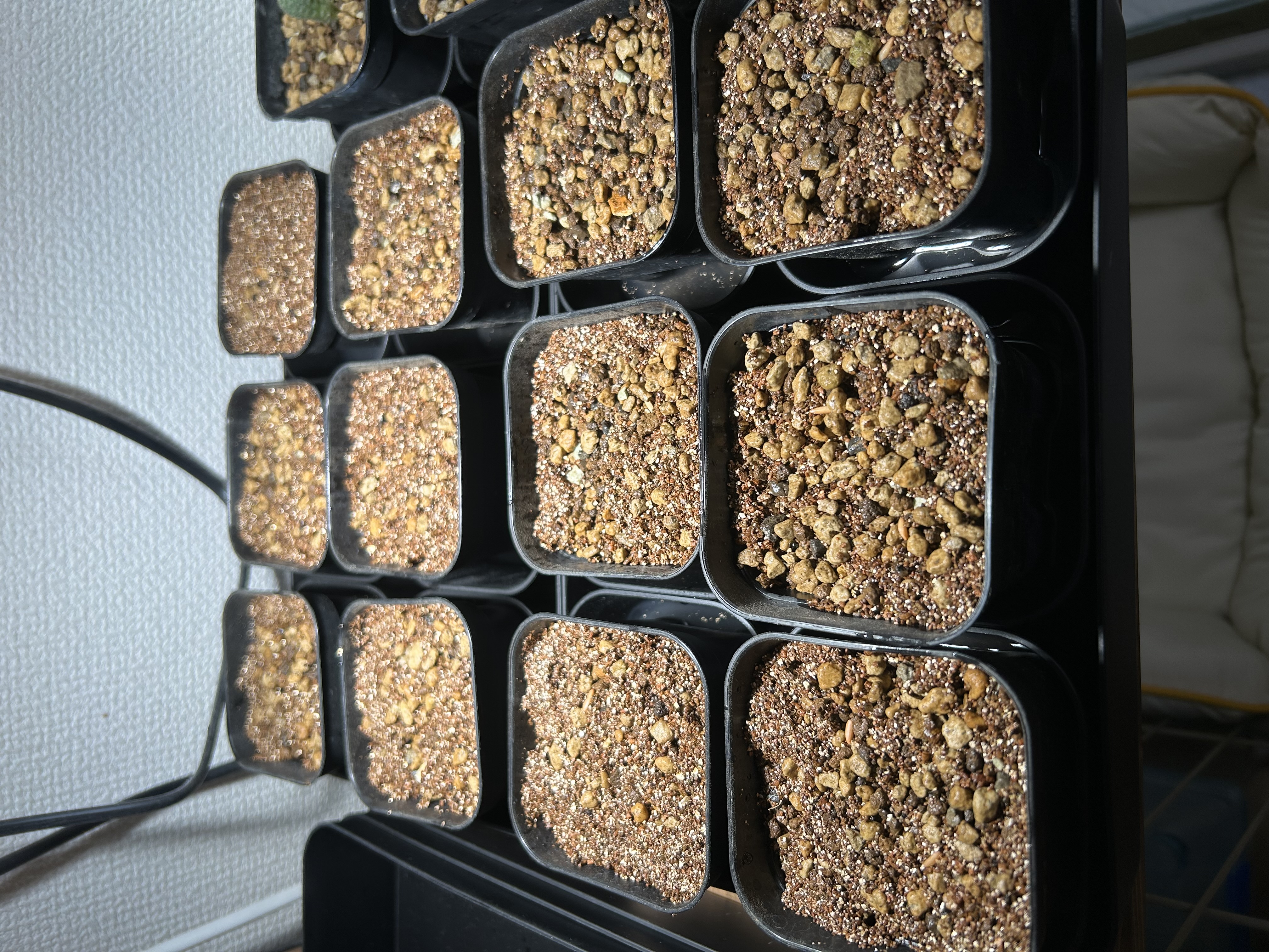 • 2024/5/10播種 ・5/25撮影12粒中 7粒発芽播種前にベンレート半日程度漬赤玉用土の上に種...