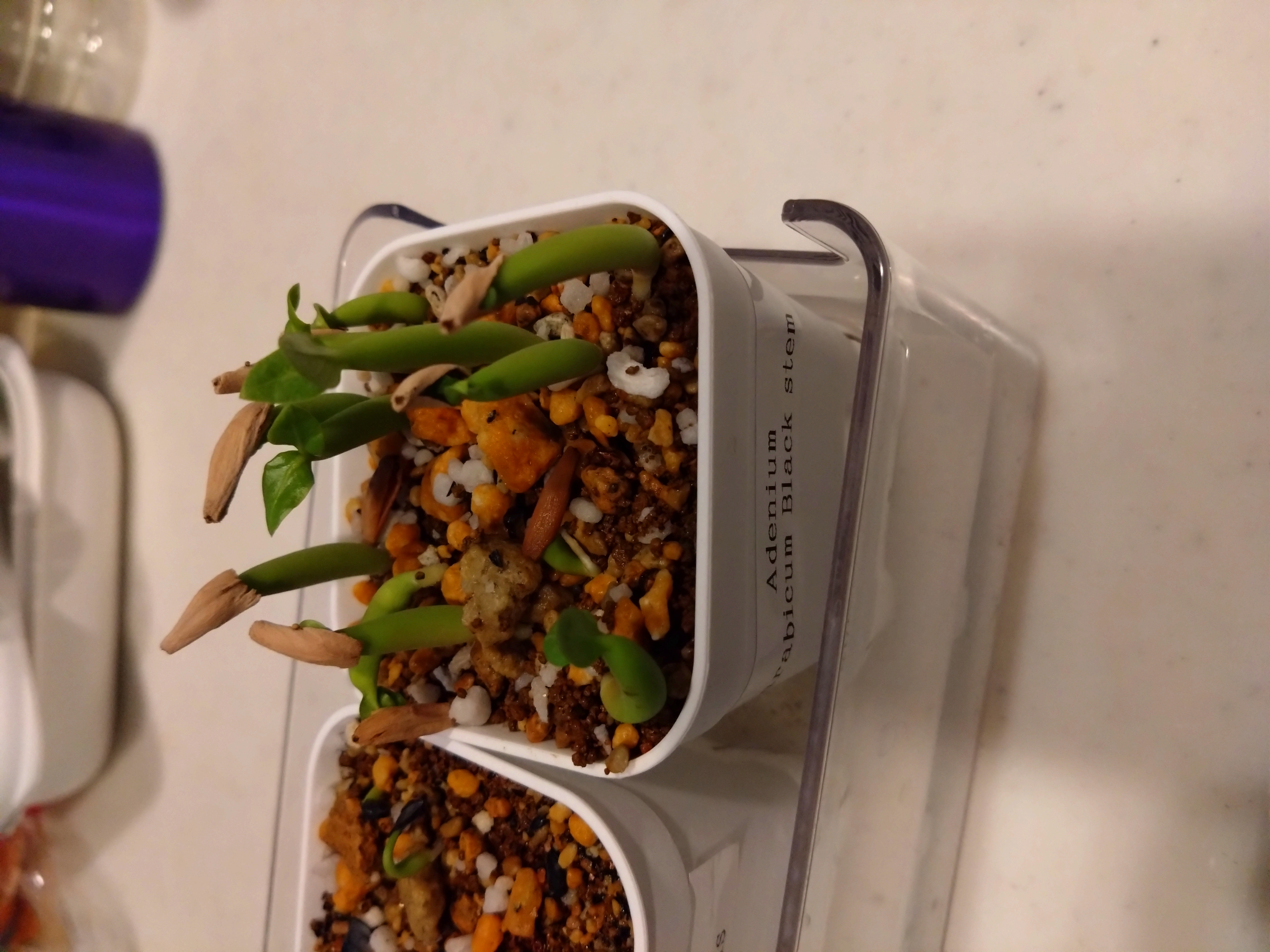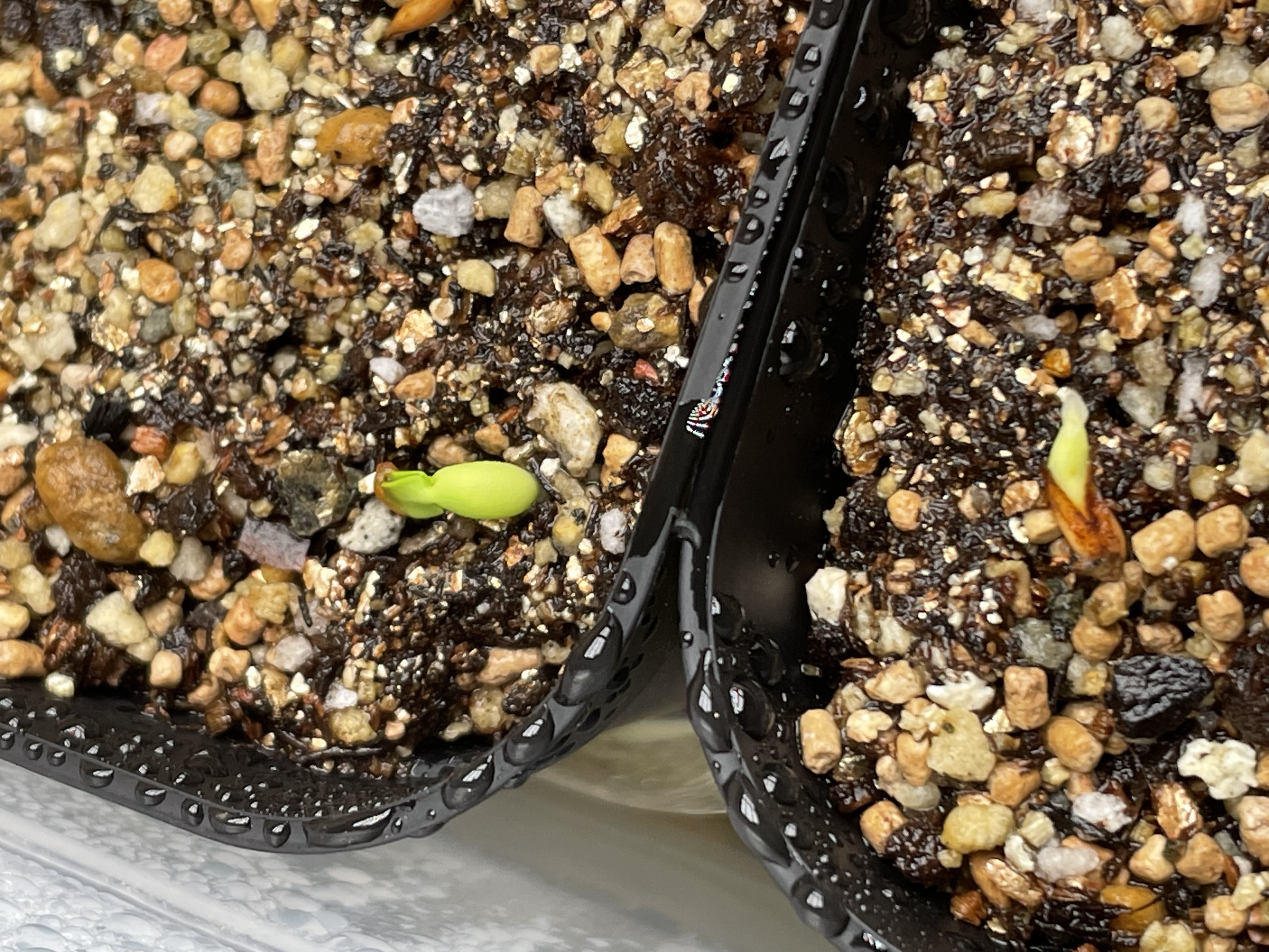 メネデール、ダコニールで24時間!市販の塊根用土➕表面に挿木様の土MIX。6/10発芽!!...
