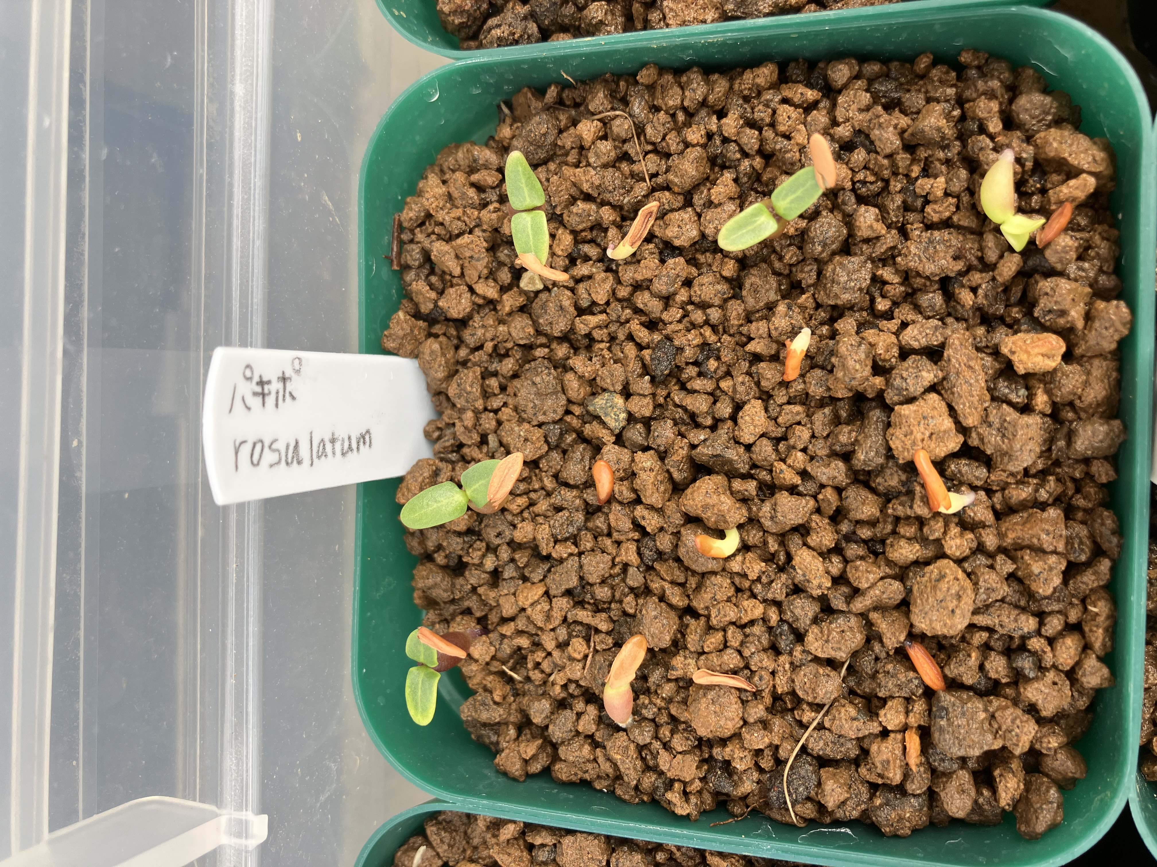 5/31播種6/2発芽確認処理はメネデール100倍希釈水に30分浸し、赤玉土細粒の上に覆土せず播種。...