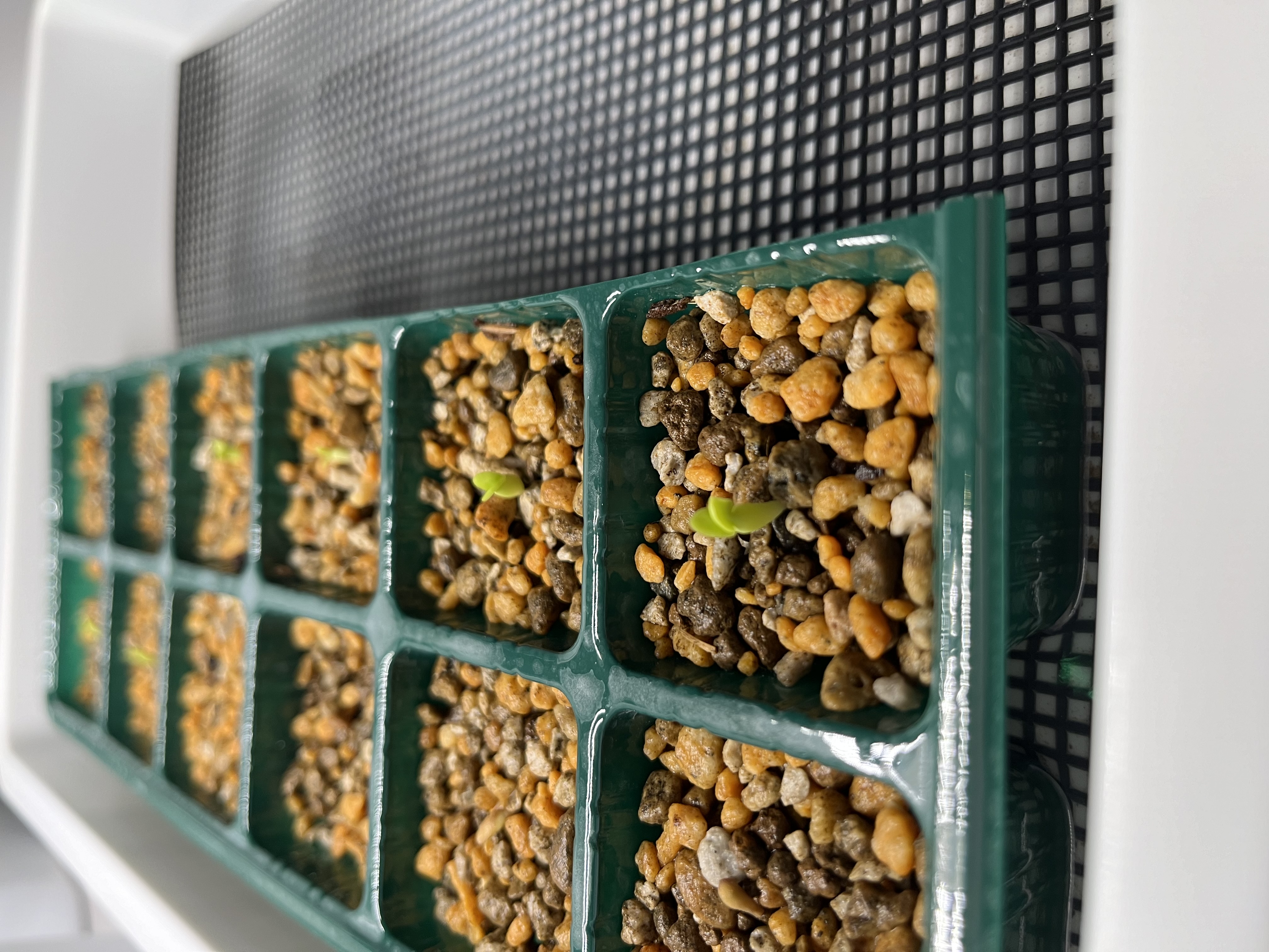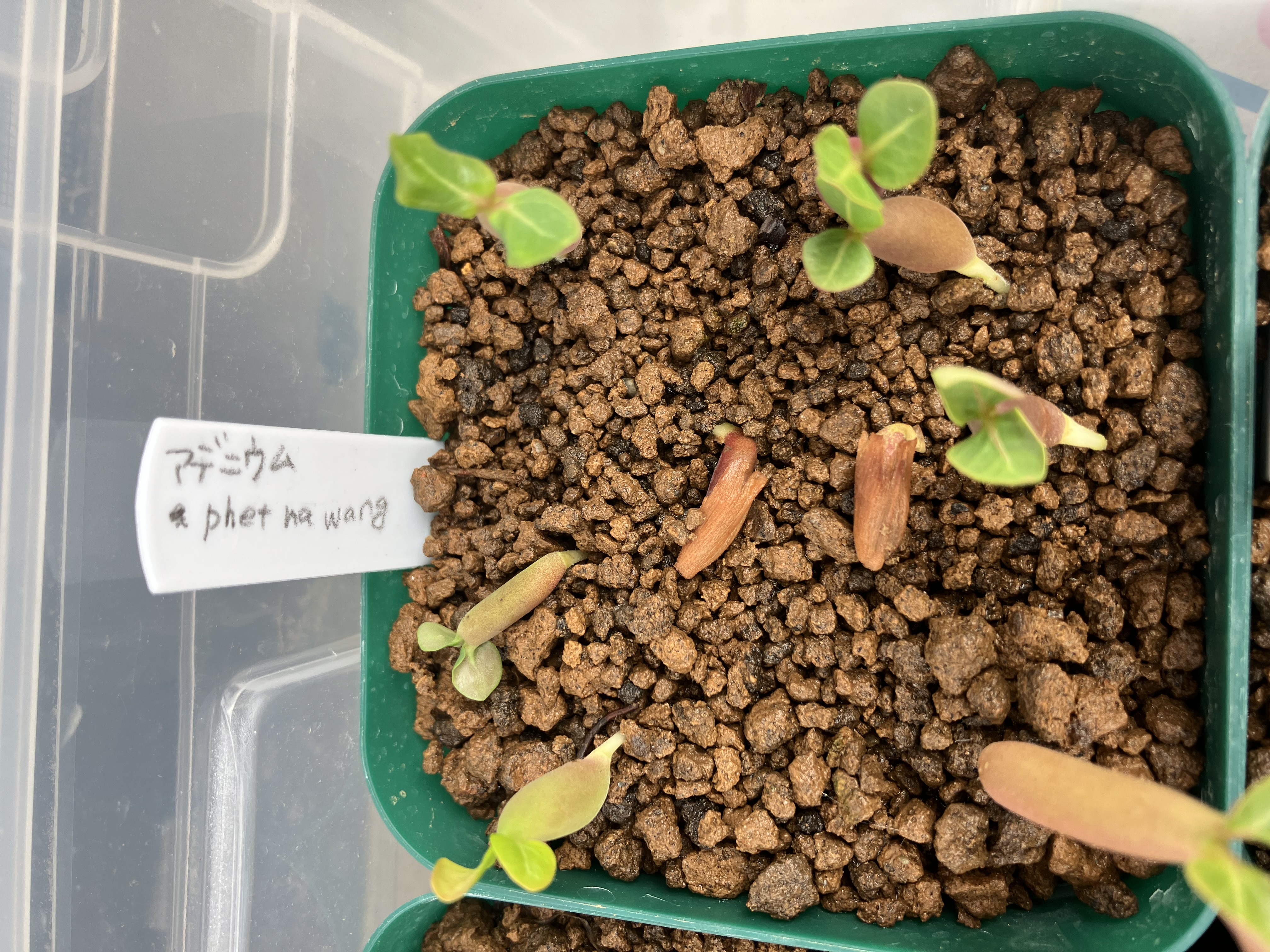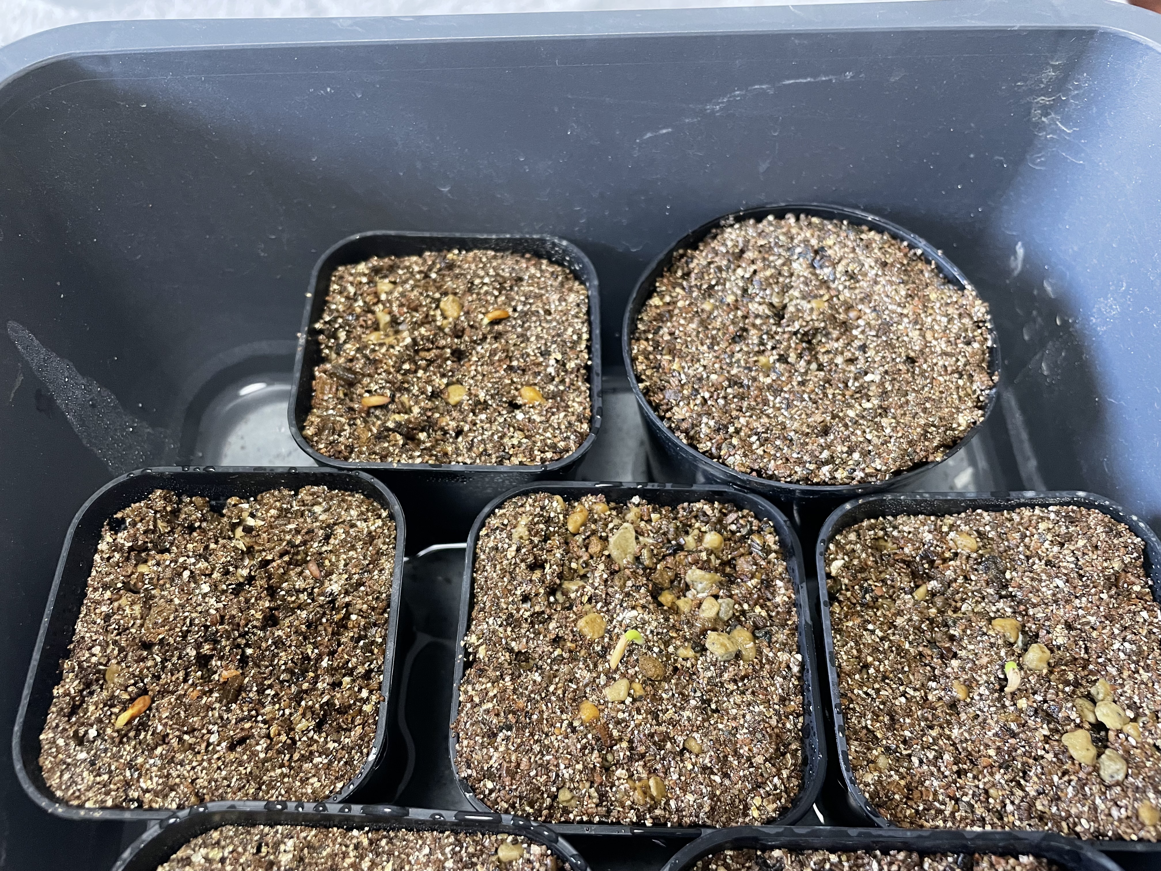 5/31播種6/3 発芽処理はメネデール100倍希釈水に30分浸し、赤玉土の細粒に覆土せず播種。発芽...