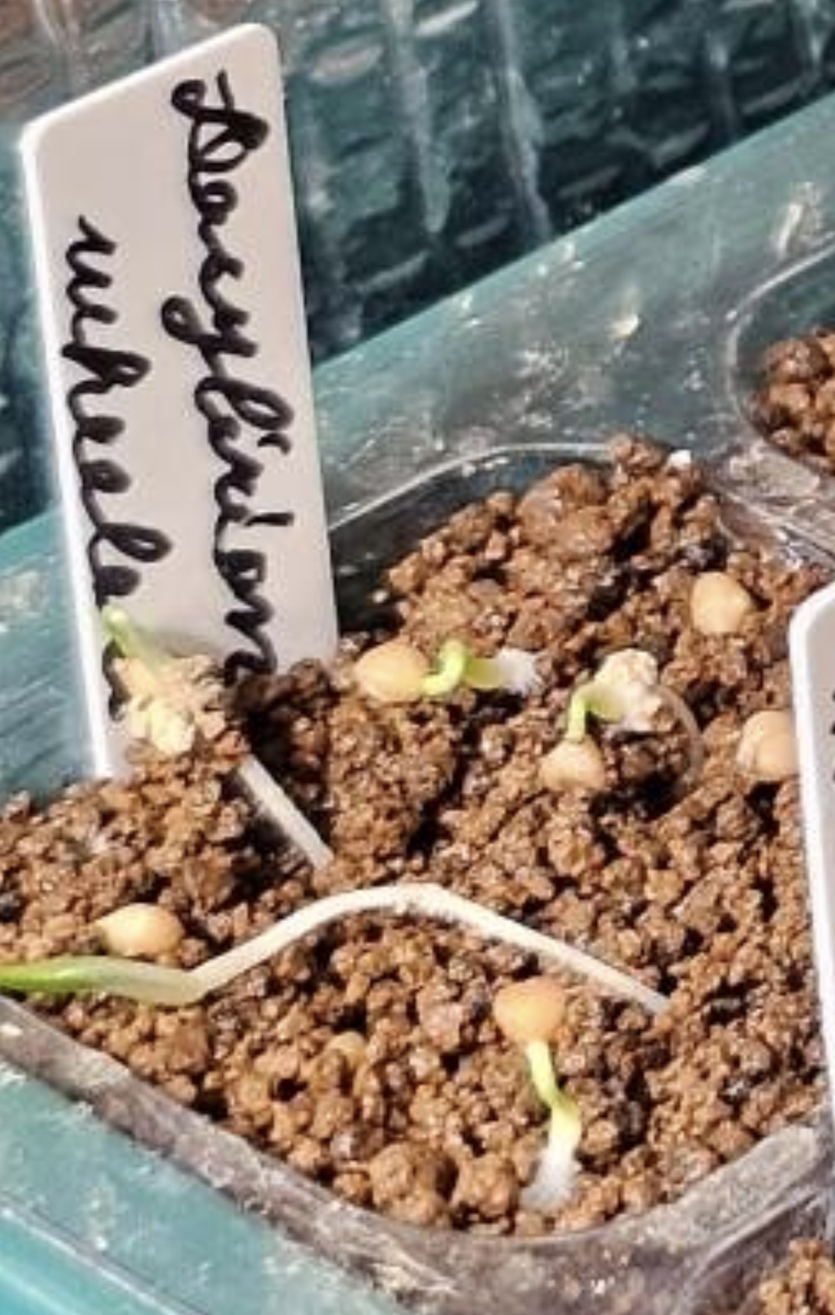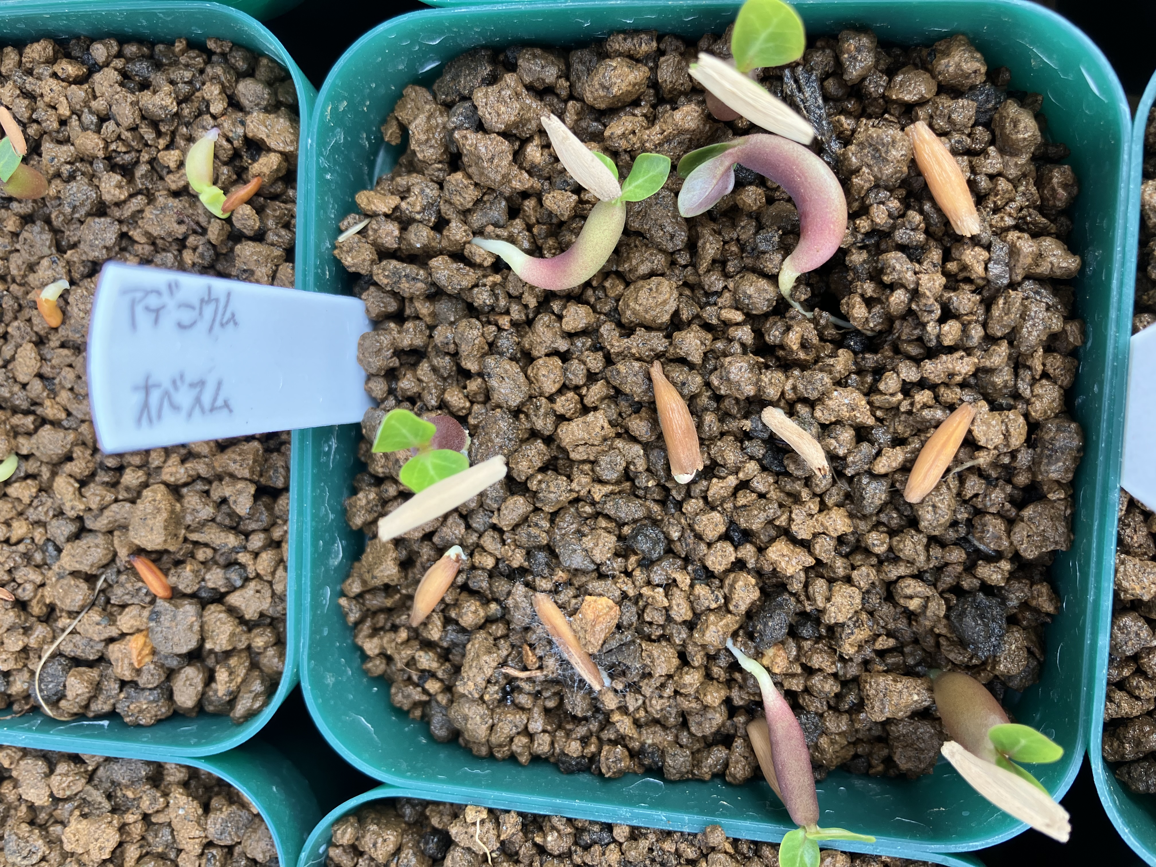 5/31播種6/2発芽確認11粒中9粒が発芽メネデール100倍希釈水に30分浸し、赤玉土細粒に覆土せ...