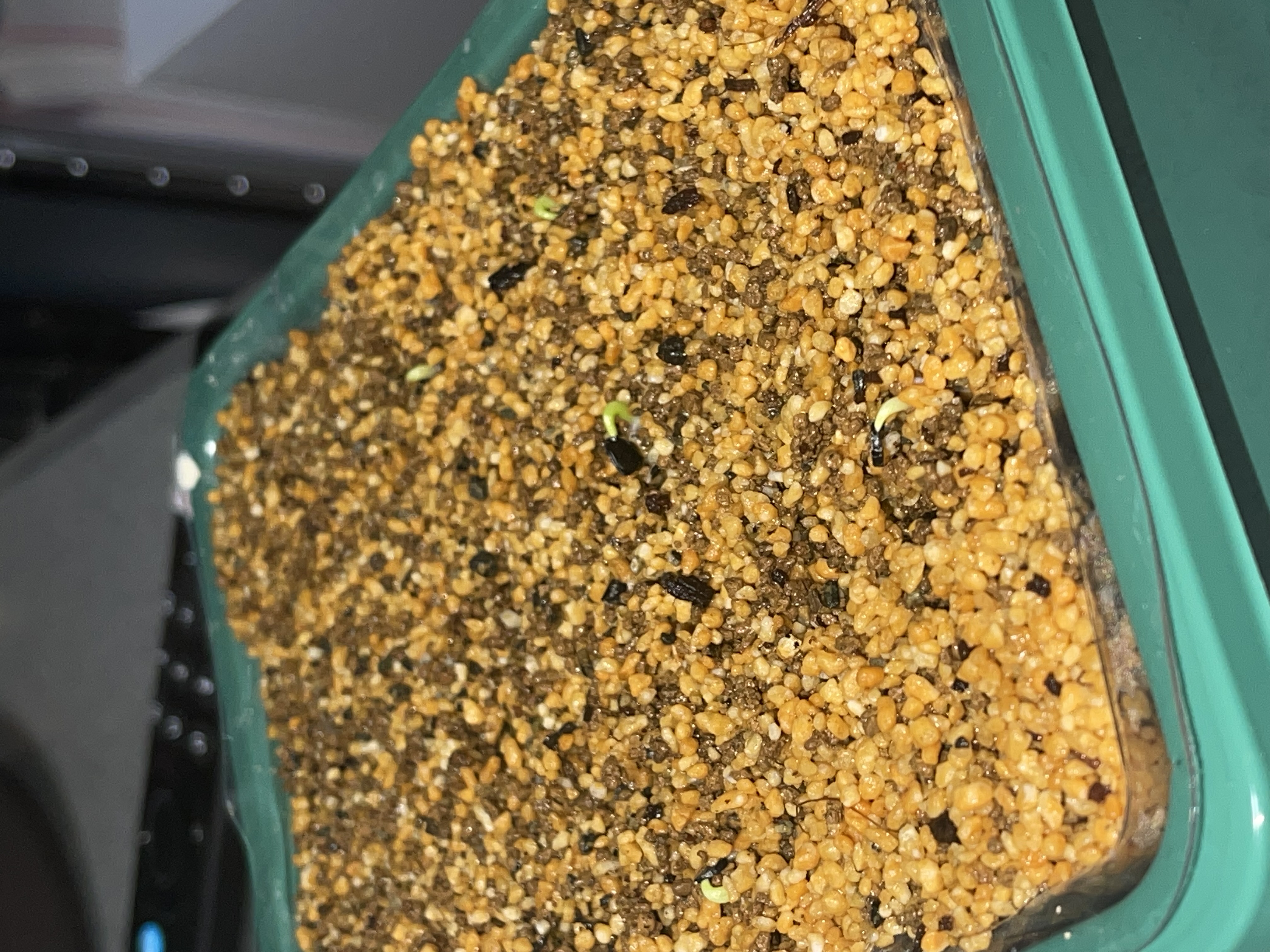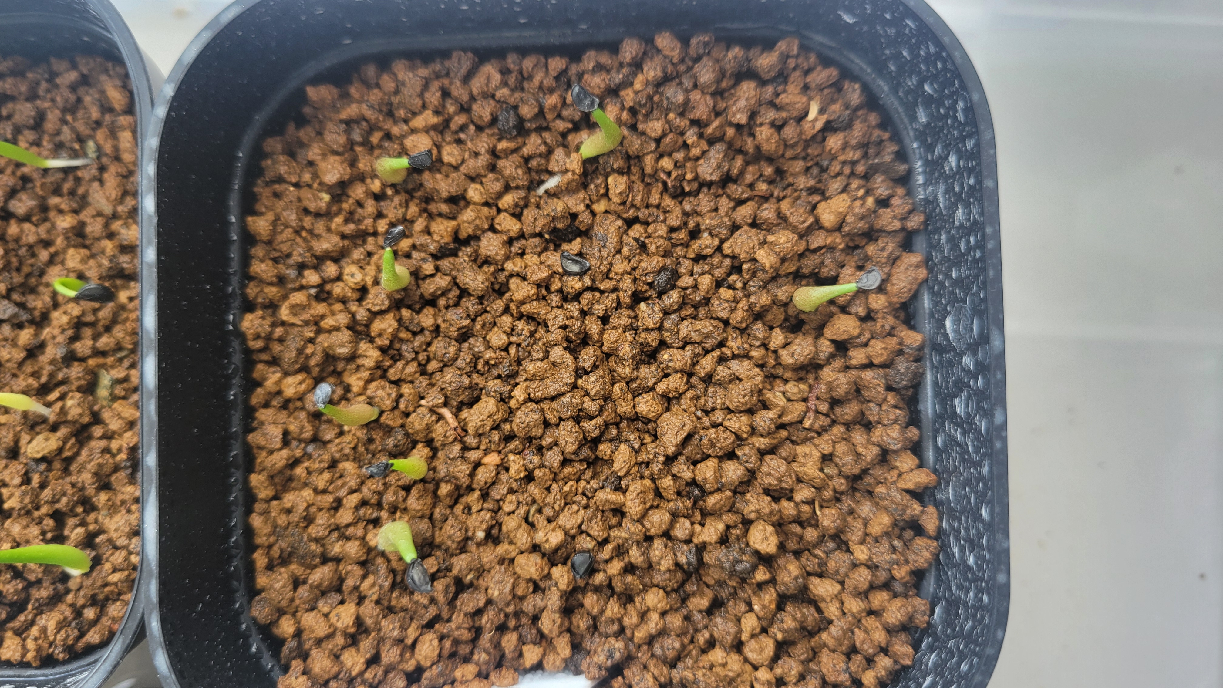20240522播種、20240605撮影播種前に1日ベンレート漬け25粒/14粒発芽赤玉細粒→多肉...