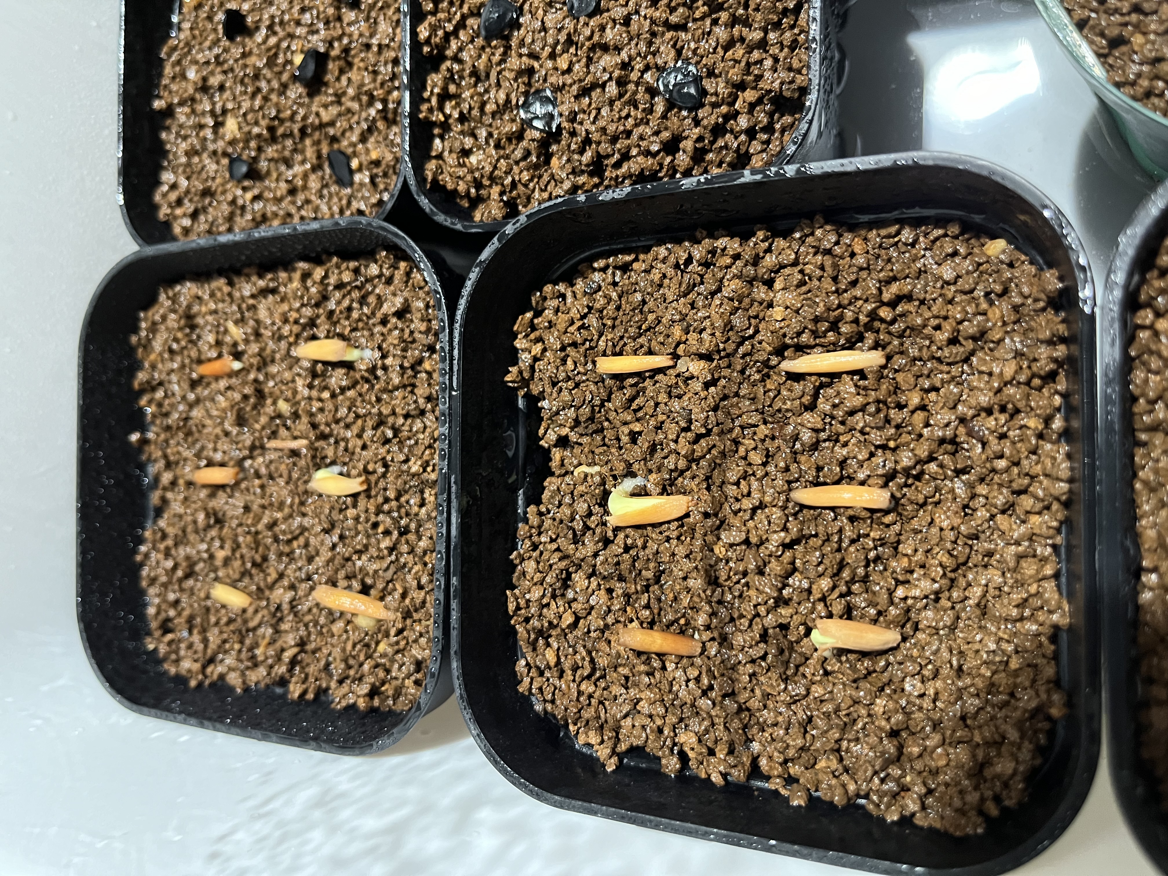 2024/5/26 うすめのメネデール溶液に1日ひたす5/27 種まき 室内ヒートマット使用水:だ...